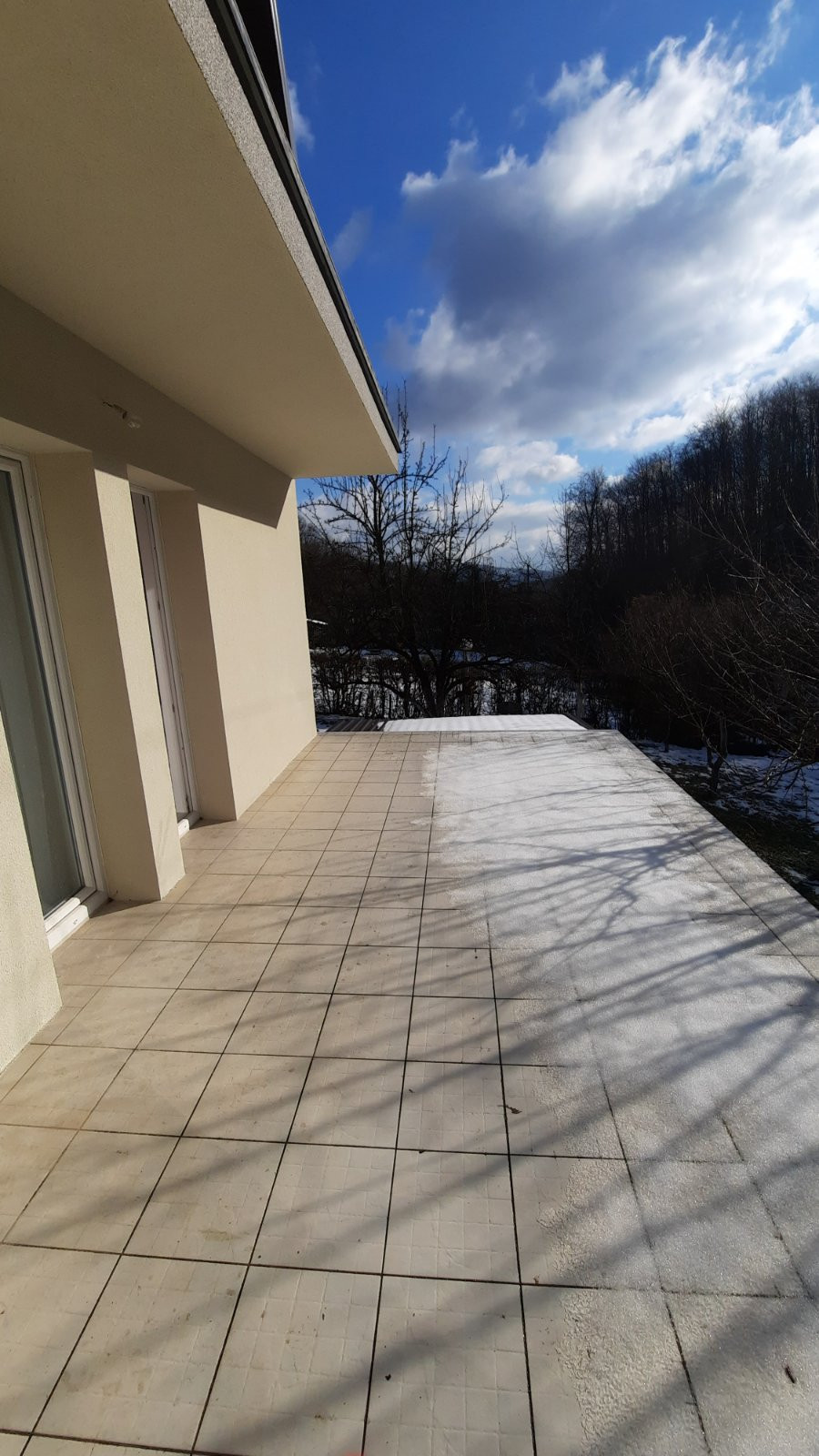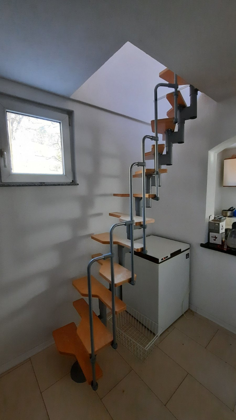 PRVI SPRAT: dvije spavaće sobe,kupatilo, hodnik i jedna veća terasa (2x3m²) koja je otvorena i ima pogled na voćnjak iza kuće gdje se nalaze i dvije ostave .