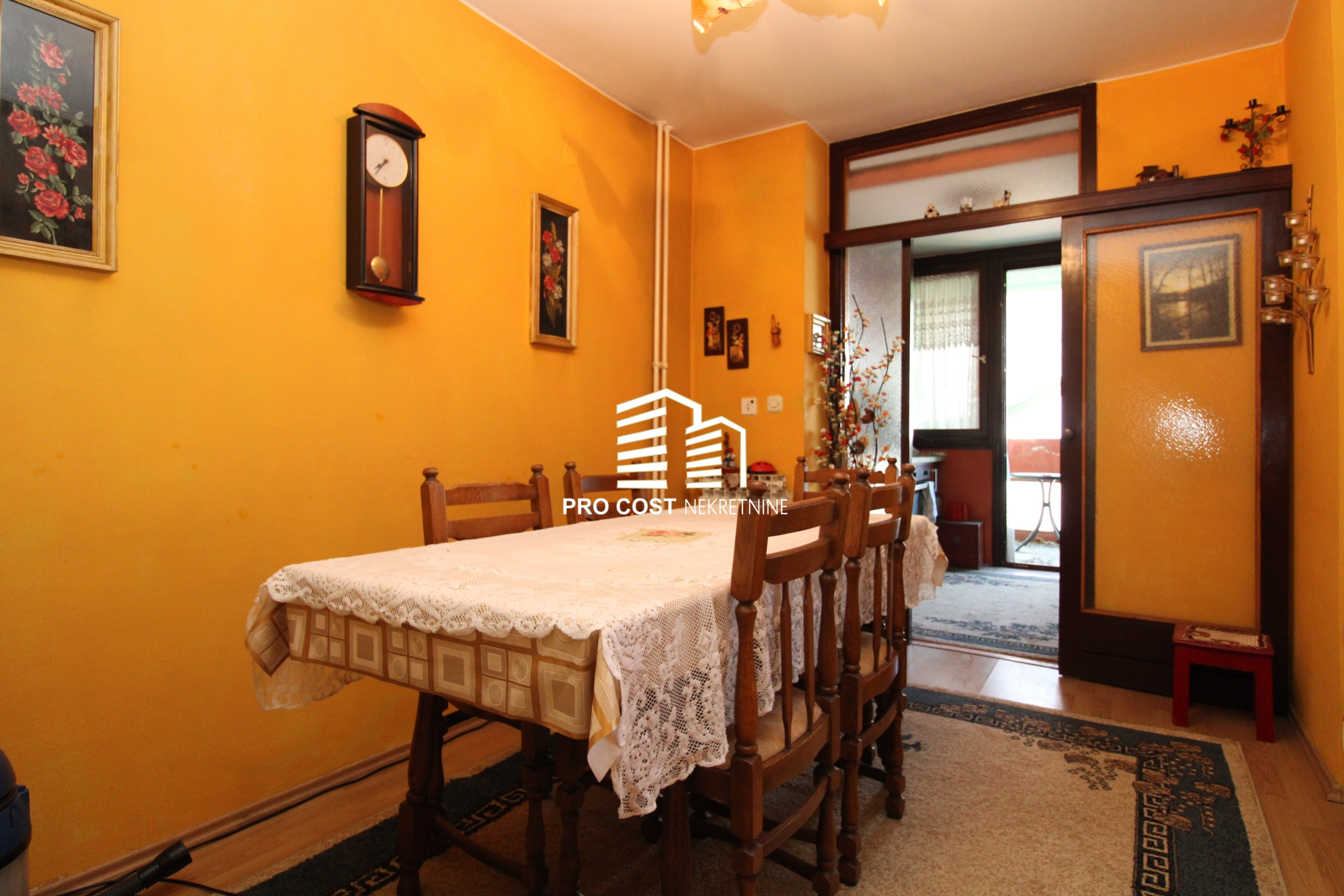 Pro Cost prodaje dvostrano orijentisan dvosoban stan uknjižene površine 59m2 poziciniran na trećem spratu stambene zgrade bez lifta. Predmetna nekretnina se sastoji od dnevnog boravka, kuhinje i trpezarije, spavaće sobe, kupatila i balkona. S obzirom na poziciniranost i dvostranu orijentaciju stan je osvijetljen tokom čitavog dana. Unutrašnja i vanjska stolarija je drvena. Na podu je postavljen parket a grijanje je centralno. Predmetna nekretnina je smještena na izuzetno atraktivnoj i pristupačnoj lokaciji a u bližem okruženju nalaze se svi neophodni sadržaji za život poput trgovine, osnovne škole, ambulante, pekare, ugostiteljskih objekata, tramvajske stanice itd.