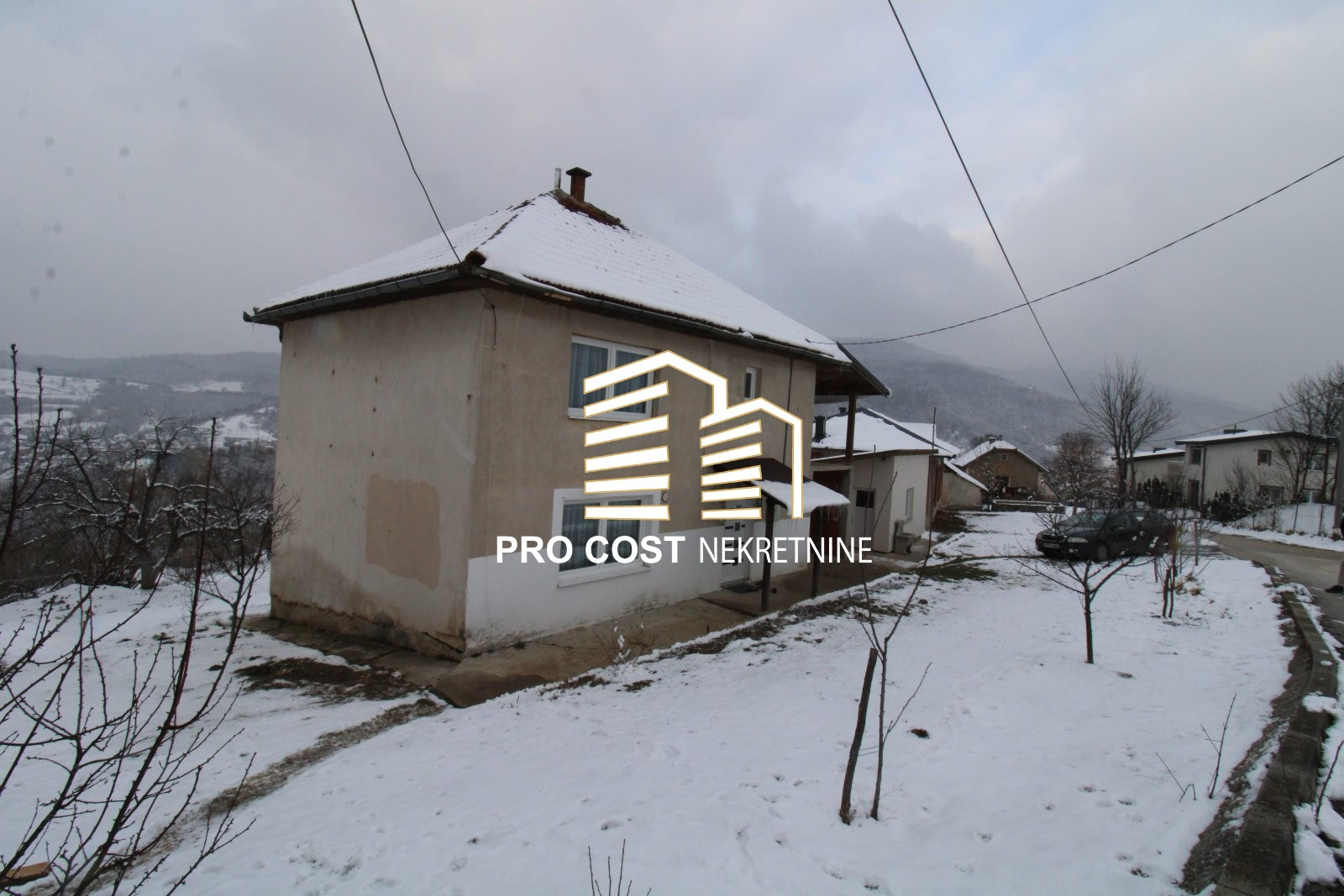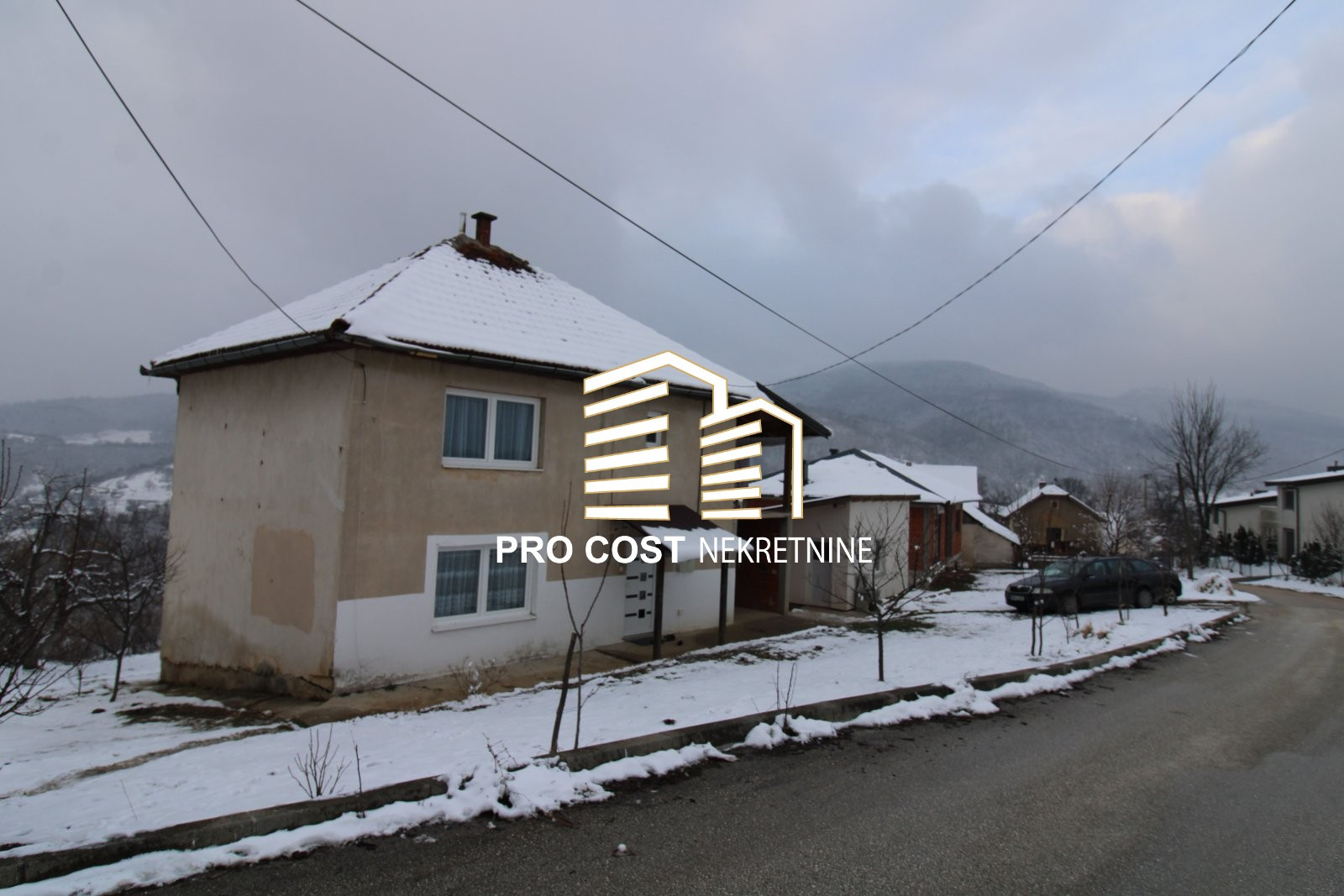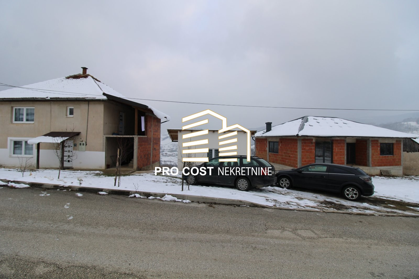 Pro Cost prodaje dvije kuće u prirodnom i mirnom okruženju smještene na zemljišnoj parceli uknjižene površine 2.496m2. Prva kuća spratnosti P+1 bruto kvadrature 150m2 je uknjižena i useljiva a izgrađena je osamdesetih godina. U prizemlju su smještene dvije prostorije i kupatilo. Vanjskim stepenicama se pristupa na prvu etažu gdje se nalaze tri prostorije i kupatilo. Unutrašnja stolarija je drvena a vanjska je PVC. Na podu je postavljen parket, grijanje je na kruta goriva a krov je pokriven crijepom. Pored ove kuće je smještena i prizemna kuća novije gradnje koja prema informacijama vlasnika posjeduje urbanističku dozvolu a izgrađena je 2013. Godine. Predmetna nekretnina je u rau bau fazi a sastoji se od prostranog dnevnog boravka i kuhinje, dvije spavaće sobe i kupatila. Krov je pokriven limom a postavljena je i vanjska PVC stolarija. Kuće su smještene u prirodnom i minrom okruženju sa obiljem zelenila i čistog zraka a krasi ih i otovoren panoramski pogled na okolna brda. Preko puta nekretnina se nalazi Sarajevo Resort a pristup je omogućen sa asfaltiranog puta. U bližem okruženju se nalazi trgovina, autobusko stajalište, džamija, Sarajevo Resort, Tarčin Forest Resort itd. Glavna saobraćajnica je udaljena cca 3 minute lagane vožnje dok je centralni dio Hadžića sa svim sadržajima koje nudi udaljen cca 15 minuta lagane vožnje. Ukjljučenje na autoput udaljeno je cca 5 minuta a centralni dio grada udaljen je cca 25 minuta vožnje.