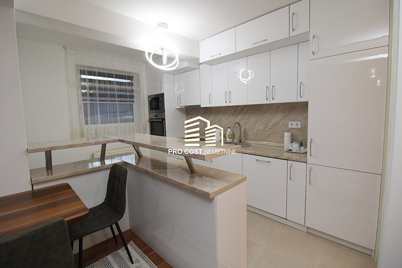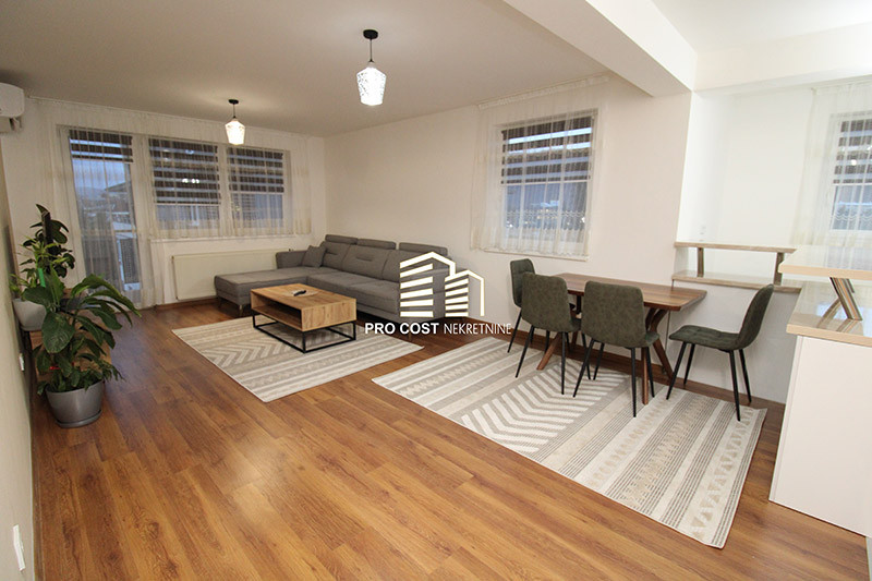 Pro Cost prodaje prostran i osvijetljen trosoban stan uknjižene površine 86 m2 smješten na 4. spratu stamebene zgrade sa liftom. Zgrada je izgrađena 2014. godine. Predmetna nekretnina se sastoji od komfornog dnevnog boravka sa izlazom na balkon sa kojeg se pruža otvoren pogled na park i rijeku Željeznicu, kuhinje, trpezarije, dvije spavaće sobe, kupatila, toaleta i ostave. Bitno je napomenuti da je stan kvalitetno kompletno renoviran, klimatiziran i idealno uređen, te savremeno opremljen sa svim novim namještajem i svim novim električnim uređajima i da nisu potrebna dodatna ulaganja, te je useljenje moguće odmah nakon potpisa kupoprodjanog ugovora. Na podu je postavljen laminat, unjutrašnja stolarija je drvena a vanjska je PVC. Grijanje je plinsko centralno. Ispred zgrade je parking prostor za stanare. Predmetna nekretnina je smještena u ulici Bosanskih gazija, a u bližem okruženju se nalaze svi neophodni sadržaji za život poput trgovine, osnovne škole, obdaništa, džamije, opštine, autobusko i tramvajsko stajalište itd. Centralni dio Ilidže sa svim sadržajima koje nudi udaljen je cca 2 minute lagane vožnje. Prodaje se potpuno namješten.