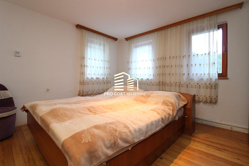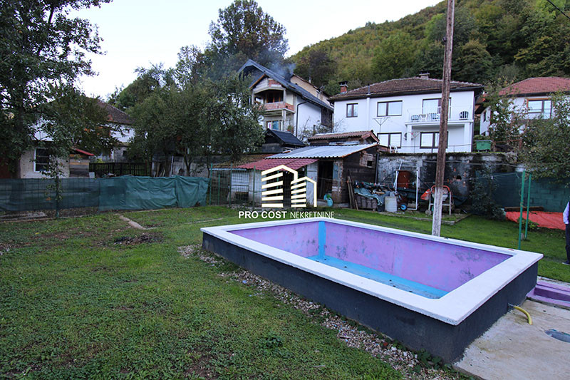 Pro Cost prodaje kuću spratnoti P+1 sa bazenom bruto kvadrature 168m2 na zemljišnjoj parceli površine 472m2. Prema informacijama vlasnika predmetna nekretnina je uknjižena a nanovo je građena 2003. Godine. U prizemlju se nalazi jedna stambena jedinica koja se sastoji od dnevnog boravka, kuhinje i kupatila. Vanjskim stepenicama se pristupa na prvu etažu gdje se nalazi dvoetažni stan koji se sastoji od dnevnog boravka, kuhinje sa trpezarijom, spavaće sobe i kupatila. Unutrašnjim stepenicama se pristupa u prizemlje gdje je smještena još jedna spavaća soba i kupatilo. Iza kuće je uređeno dvorište u prirodnom okruženju i bazen dimenzija 4m x 5m dubine 140cm. Ispred kuće protiče potok koji ovu nekretninu čini još atraktivnijom. Pristup nekretnini je omogućen sa asfaltiranog puta. U bližem okruženju se nalaze svi neophodni sadržaji za život poput trgovine, osnovne škole, ambulante, autobuskog stajališta, ugostiteljskih i poslovnih objekata itd. Bitno je napomenuti da je u fazi izgradnja tramvjajske pruge koja povezuje Ilidžu i Hrasnica koja će znatno olakšati saobraćajnu komunikaciju sa Ilidžom. Centralni dio Ilidže sa svim sadržajima koje nudi, Međunarodni aerodrom Sarajevo, Vrelo Bosne itd udaljeni su cca 10 minuta lagane vožnje.