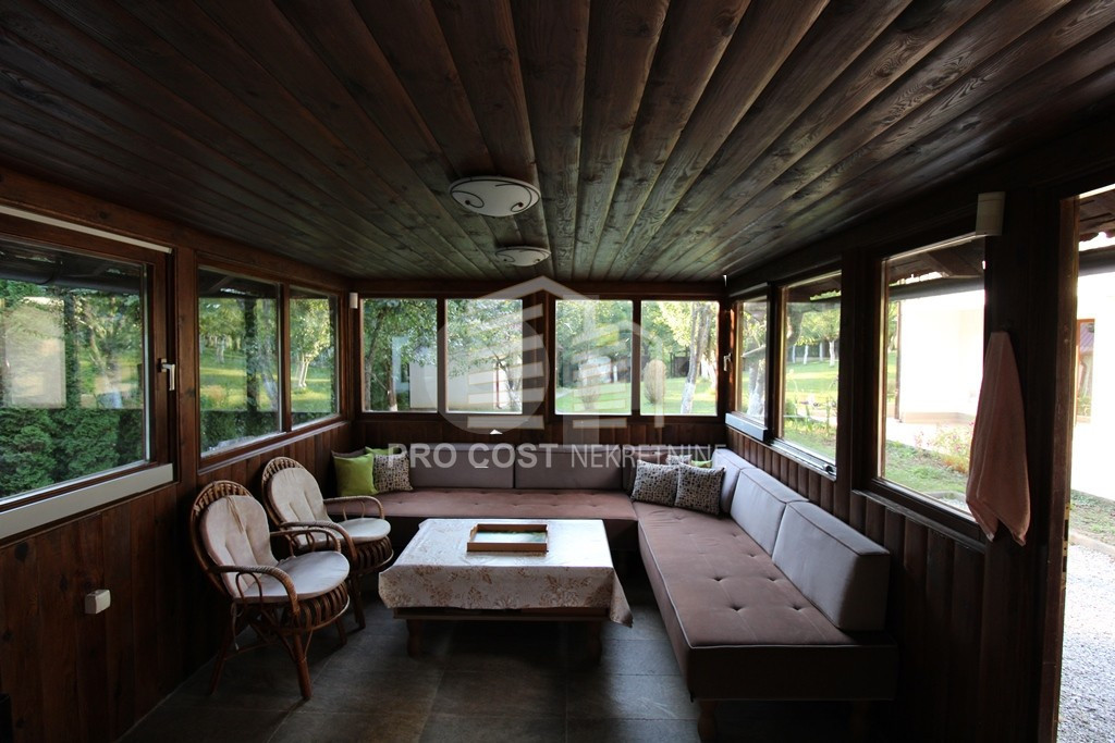 Kuća je pažljivo dizajnirana s posebnom pažnjom posvećenom detaljima. Vanjska i unutrašnja stolarija je drvena, dajući toplinu i šarm prostoru.