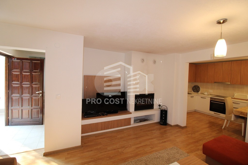 Na prizemlju kuće nalazi se prostrano predsoblje sa velikim ugradbenim američkim plakarom koje vodi u ostale prostorije. Dnevni boravak sa trpezarijom i kuhinjom je otvoren i prozračan prostor, a poseban dodatak je kamin koji stvara atmosferu ugodnu za opuštanje. Na prizemlju se nalazi i jedno veliko kupatilo.