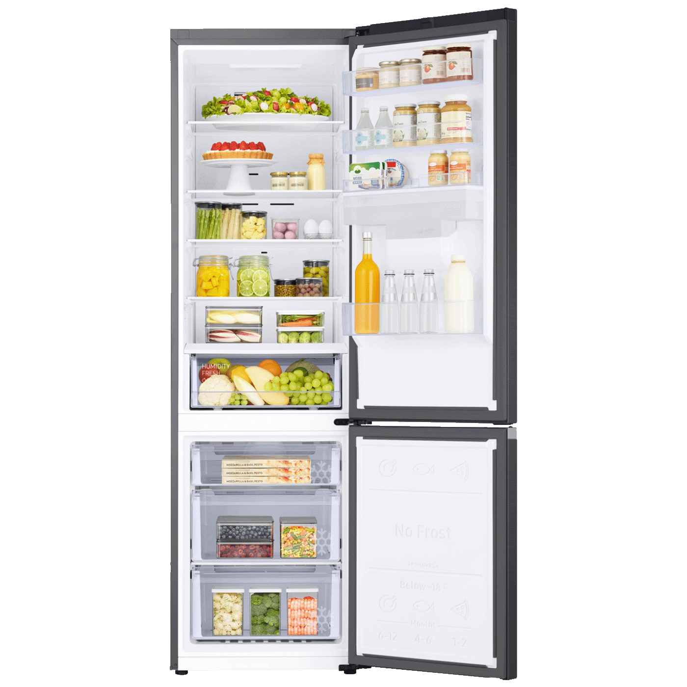 Samsung RB38C650EB1/EK donosi prostranu kombinaciju frižidera i zamrzivača u elegantnom crnom izdanju. Sa ukupnim neto kapacitetom od 386 litara i zamrzivačem smještenim pri dnu, ovaj model je odličan izbor za veće domaćinstvo koje želi uređaj sa modernim funkcijama, bez potrebe za ručnim odleđivanjem.