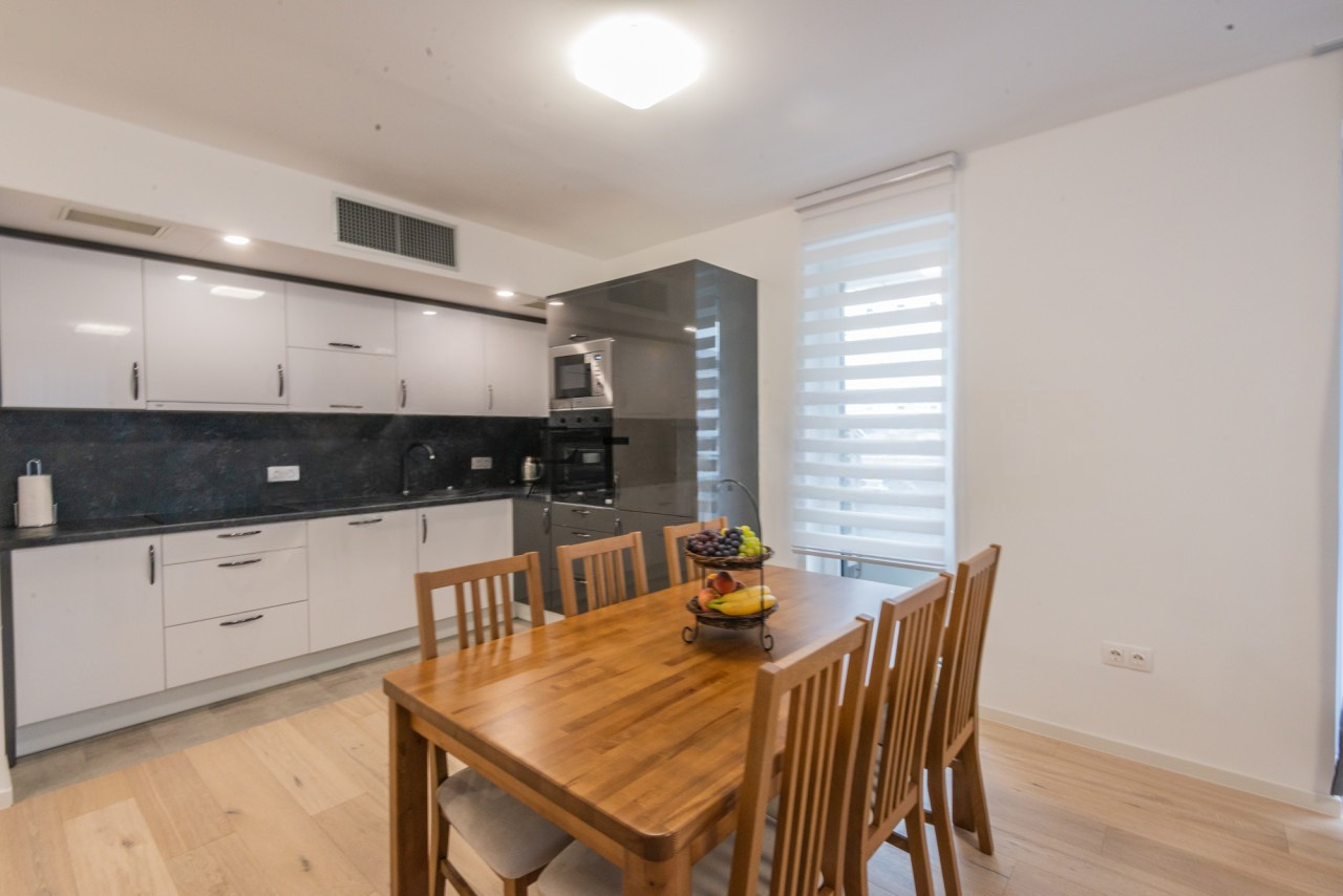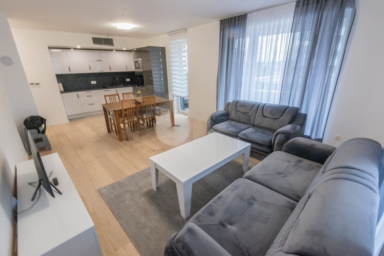 Stan se odlikuje vrlo kvalitetnim uređenjem, modernim materijalima i funkcionalnim rasporedom koji pruža visok nivo udobnosti. Prostor je svijetao, prozračan i pažljivo dizajniran kako bi ispunio potrebe dugoročnog i ugodnog boravka.