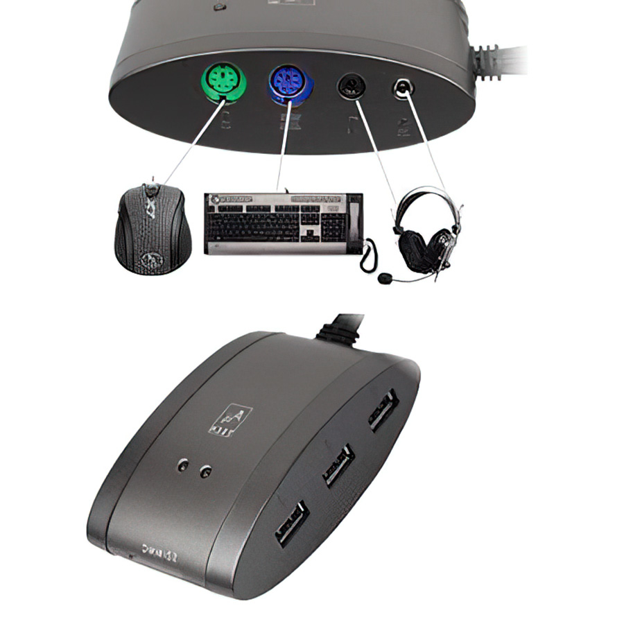 USB HUB za 3 uređaja, PS/2miš, tast., audio,7in1 CR, A4-MS-9