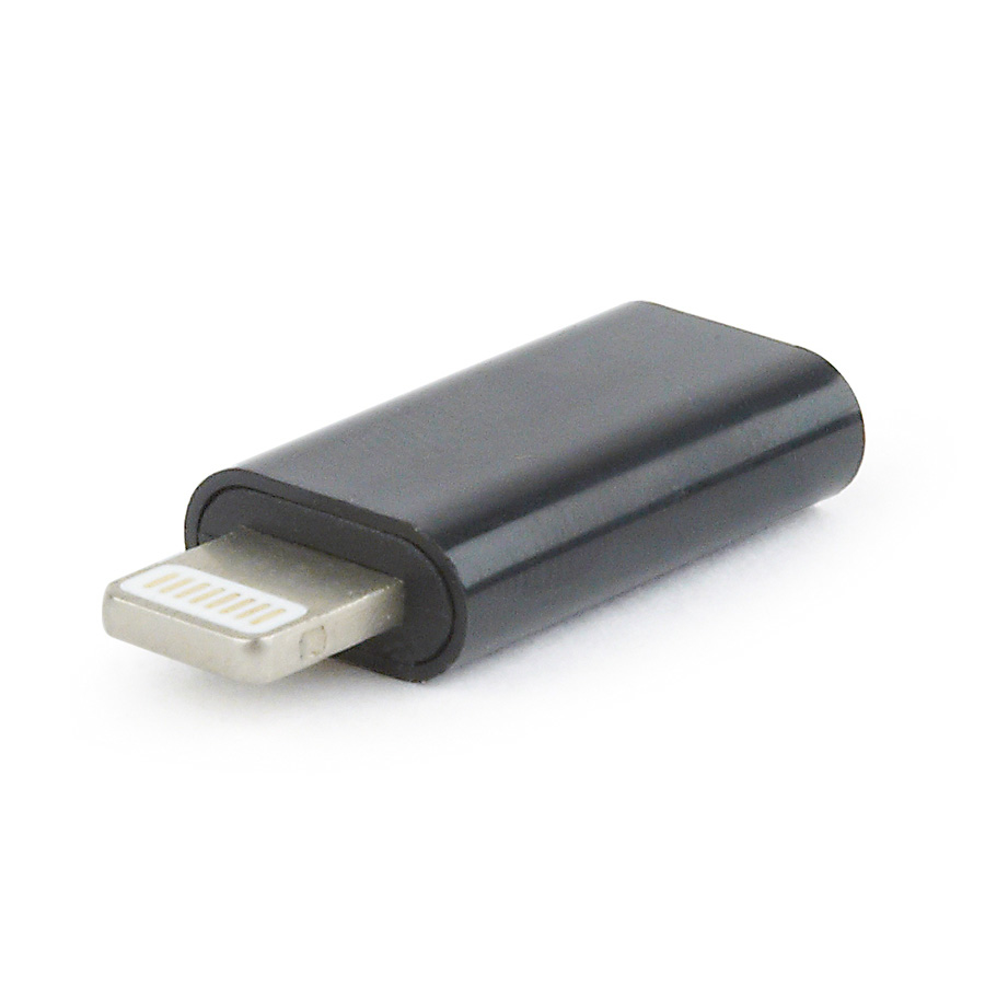 USB adapter Type-C (female) to iPhone (male), BLACK, GEMBIRD A-USB-CF8PM-01