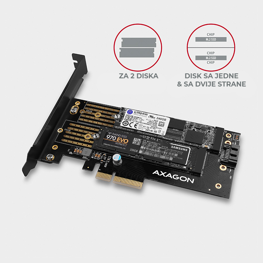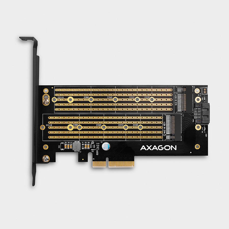 Kontroler PCI-Express CON PCIe 3.0x4 to Dual M.2 (NVMe + SATA), LP, PCEM2-D, AXA