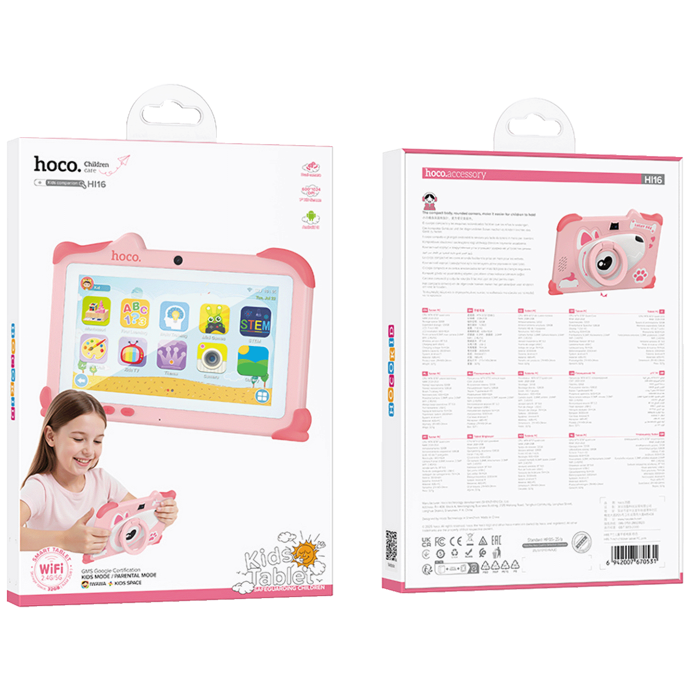 hoco. Tablet 7", Quad Core 1.3 GHz, RAM 4GB, 32GB, 3000 mAh - HI16 Pink