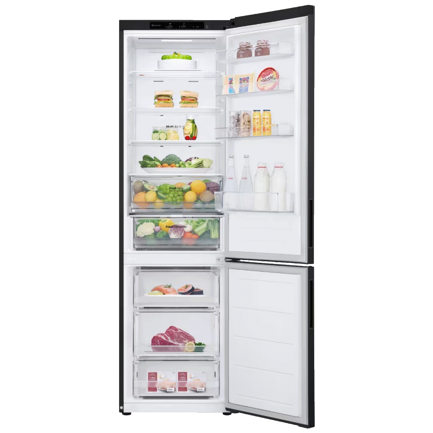LG GBV22NCCEP je kombinirani hladnjak sa zamrzivačem u donjem dijelu i ukupnim kapacitetom od 387 litara, dizajniran da pruži dovoljno prostora za sve vaše namirnice uz modernu tehnologiju hlađenja. Opremljen je tehnologijom DoorCooling⁺™ koja omogućava brže i ravnomjernije hlađenje kroz vrata kako bi hrana duže ostala svježa. Ovaj model koristi Smart Inverter kompresor koji doprinosi energetski učinkovitom i tihom radu uređaja, a minimalistički dizajn se lako uklapa u različite kuhinjske stilove.