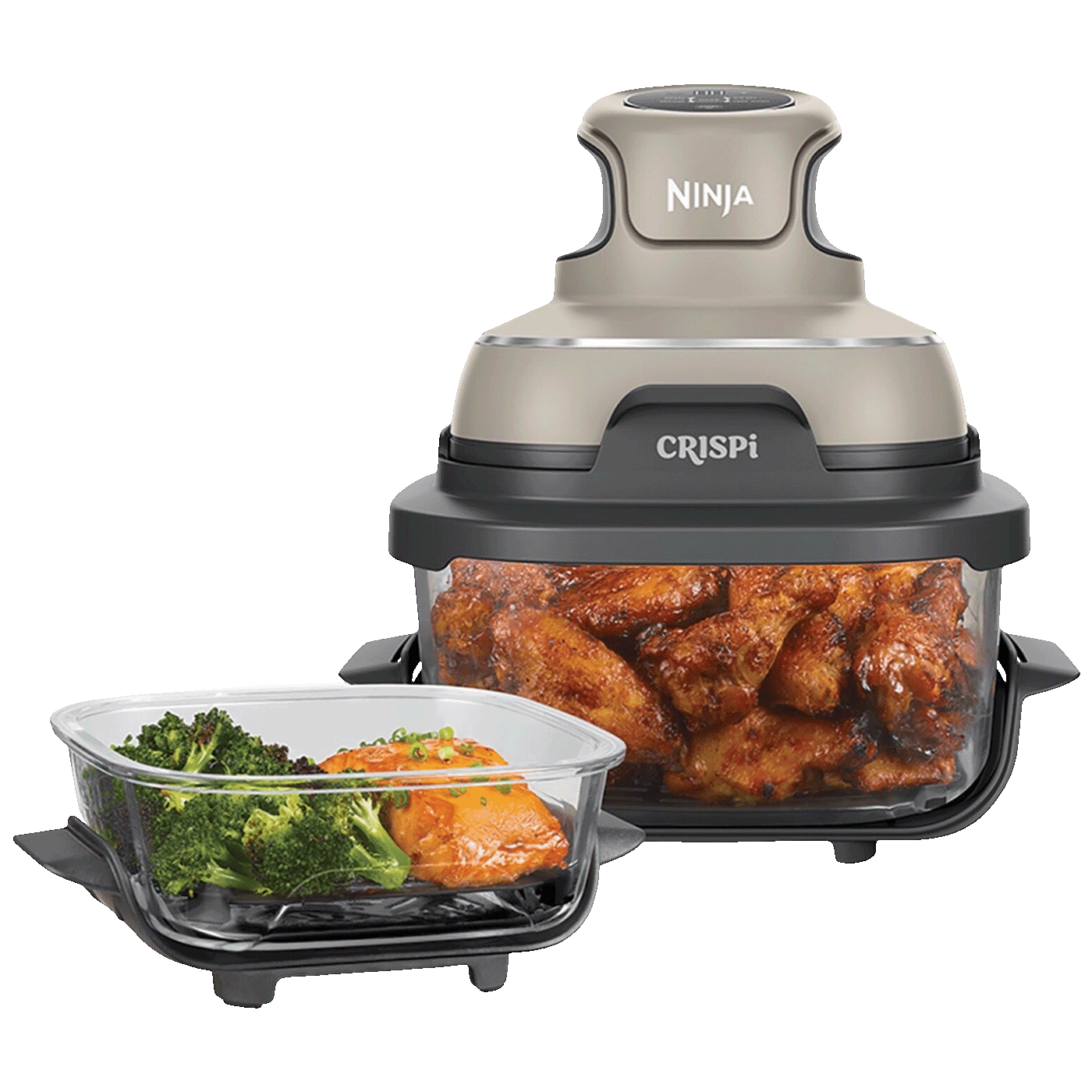 Ninja CRISPi 4-u-1 je prenosiva i kompaktna friteza koja kombinuje funkcije air fry, roast, keep warm i recrisp (ponovno hrskanje) u jednom uređaju. Umjesto klasične korpe, koristi Ninja TempWare staklene posude koje su otporne na toplotne šokove i ne sadrže PFAS/PTFE hemikalije, što omogućava prženje zrakom bez neželjenih tvari i zdraviju pripremu hrane. Možeš kuhati male i velike porcije zahvaljujući dvije staklene posude različitog kapaciteta, a PowerPod jedinica od 1700 W pruža snažnu toplinu do 185 °C za ravnomjerno i brzo kuhanje. Ovaj Airfryer također je prikladan za kućnu kuhinju, male prostore i studijske apartmane, a uklonjive posude i oprema perivi su u mašini za suđe za jednostavno čišćenje.