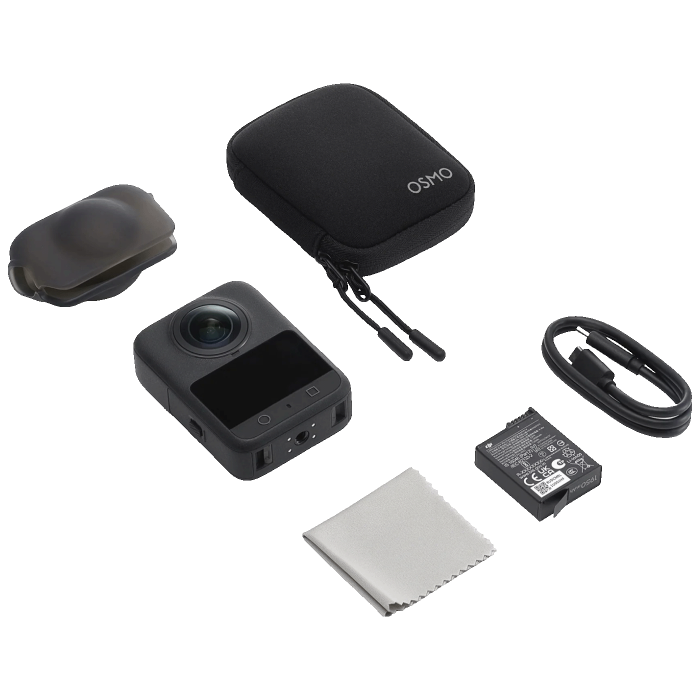 • U paket uključeno: Osmo 360 kamera, baterija Osmo Action Extreme Battery Plus, zaštitna torbica, gumeni zaštitnik leće, USB-C kabel