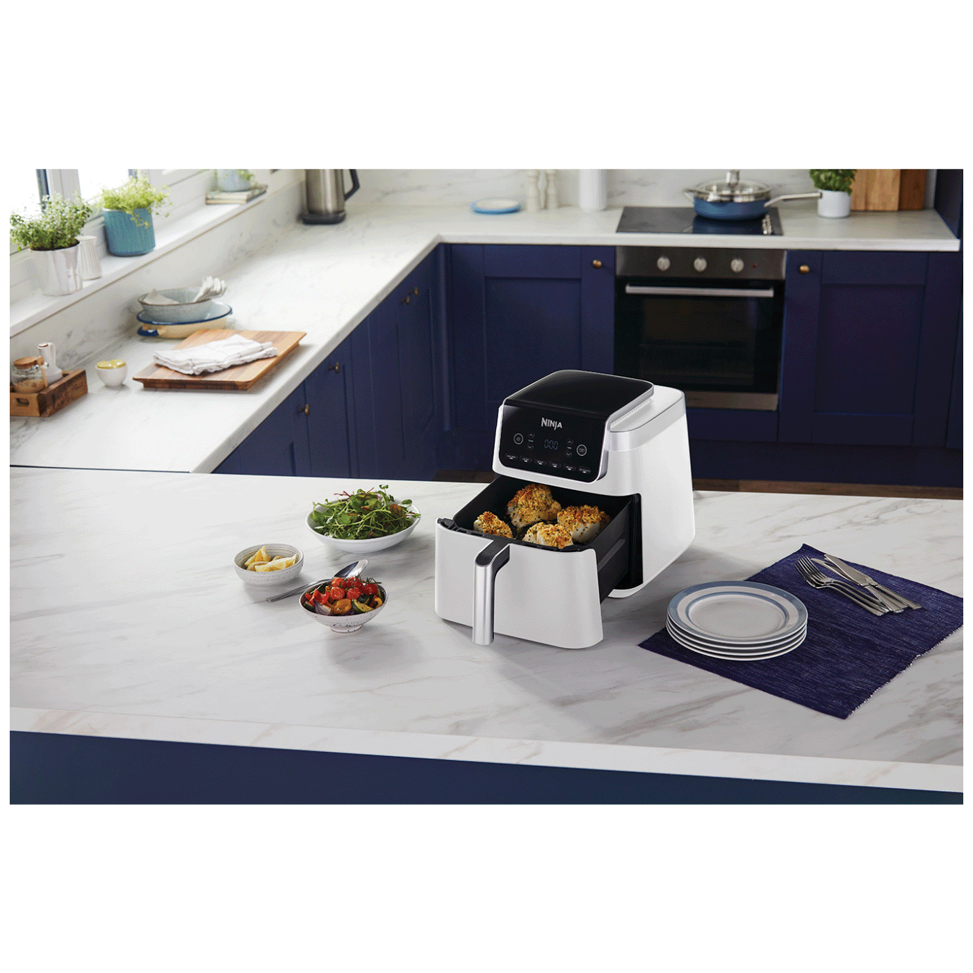 Tražite li kompaktnu fritezu koja može skuhati dovoljno za cijelo kućanstvo, a da ne zauzme sav prostor na kuhinjskom pultu? Ninja Air Fryer MAX PRO maksimalno iskorištava svaki inč radnog prostora i ima mjesta za do 4 pileća prsa u velikoj ladici od 6,2 litre. Savršeno bilo da kuhate za jednu osobu ili do četiri osobe.