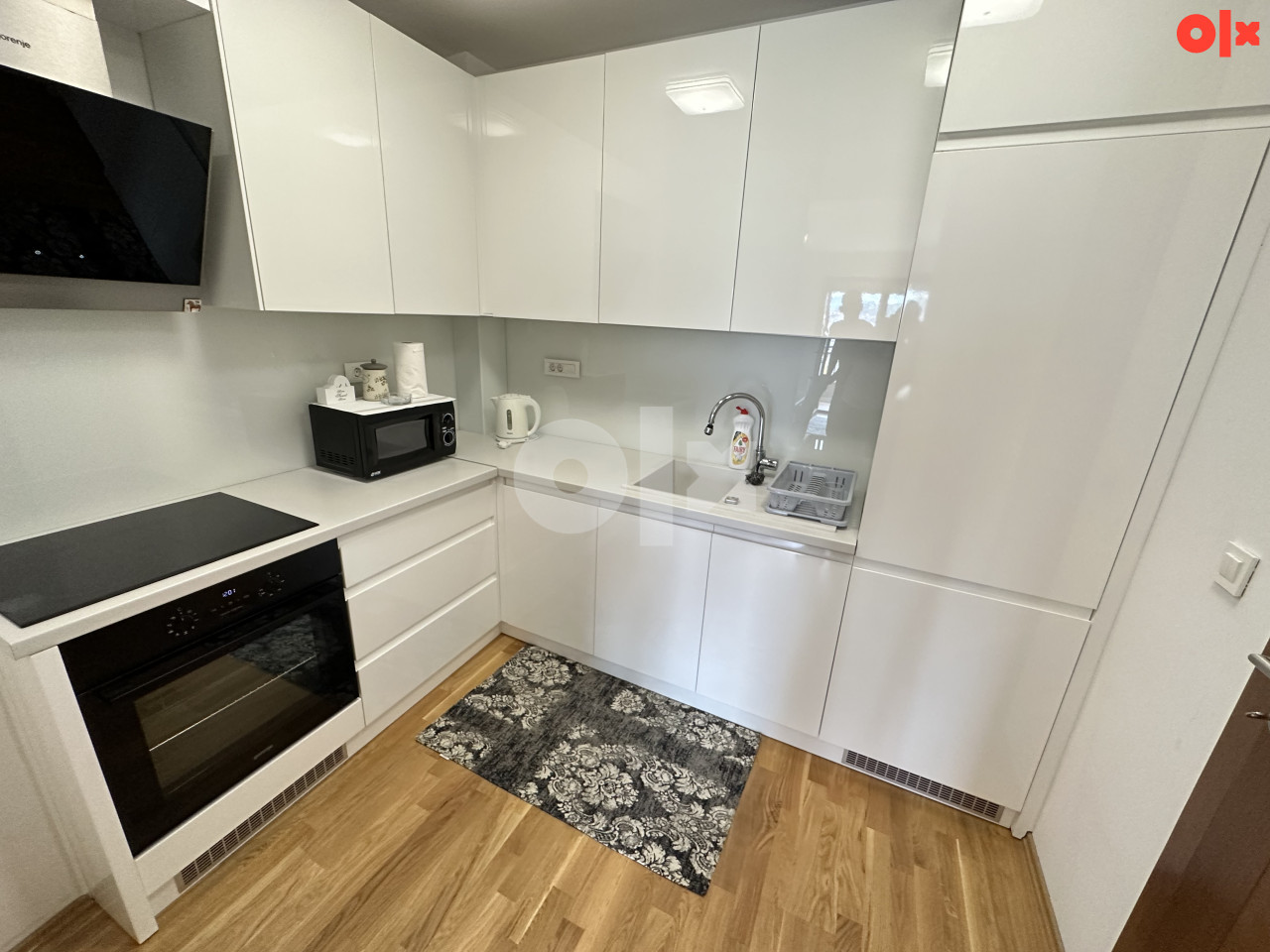Prodaje se potpuno NAMJEŠTEN stan u naselju Gornji Kovačići ukupne površine 55m² + vanjsko parking mjesto ispred zgrade. Stan se nalazi na 2. (Zadnjem) spratu zgrade bez lifta. Sastoji se od: hodnika, dnevnog boravka sa trpezarijom, kuhinje, spavaće sobe, kupatila i balkona sa pogledom na grad. Posjeduje: vrhunski parket, plinsko etažno grijanje, vrhunska blindirana vrata, kompletno opremljenu i novu kuhinju, ugradbene ormare… Za više informacija kao i da zakažete obilazak stana pozovite brojeve telefona: 063 350-046, 063 894-155 Agent: Nihad Bajrami