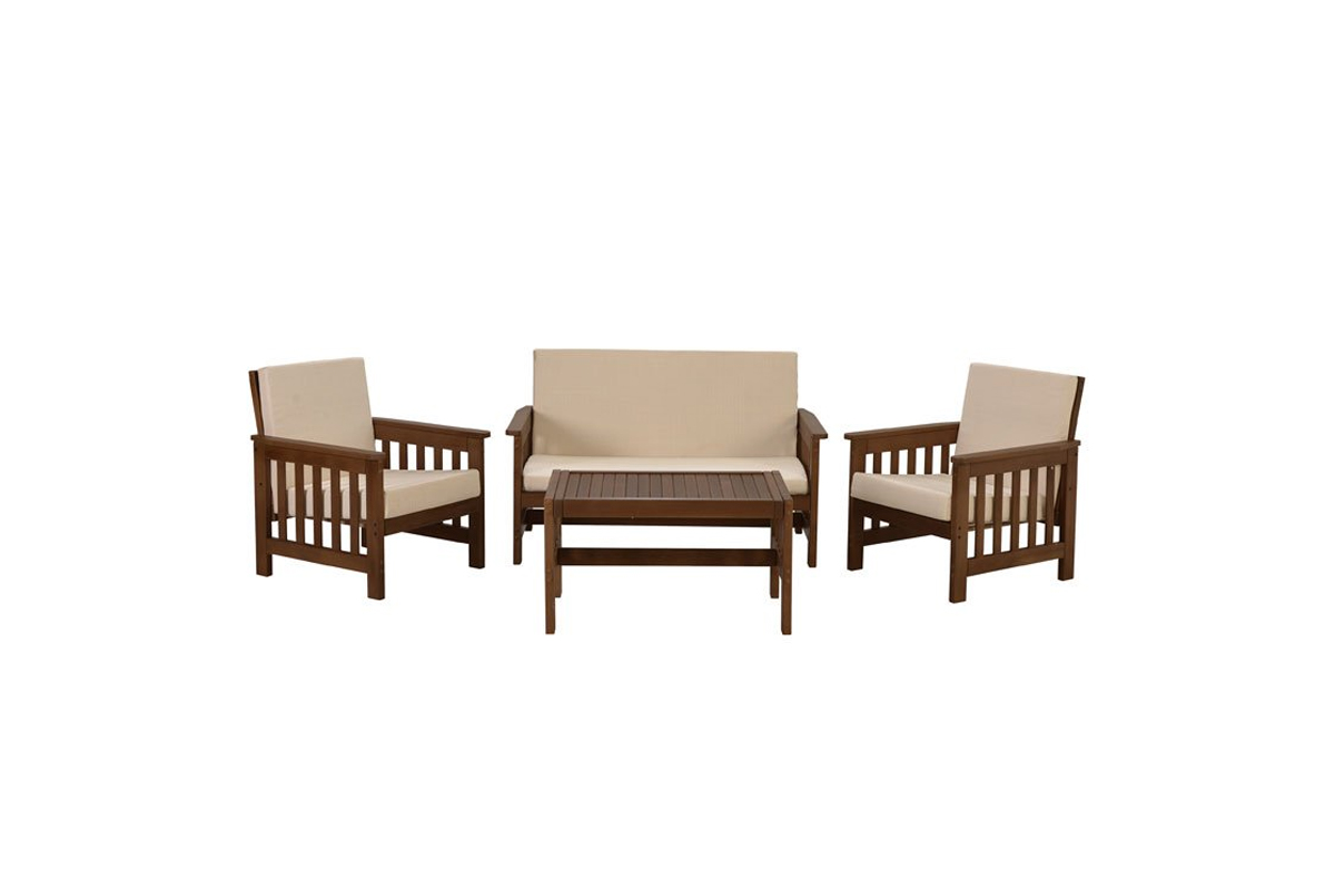 Dimenzije fotelje: 60 x 77 x 70 cmDimenzije dvoseda: 136 x 74 x 75 cmDimenzije stola: 80 x 50 x 45 cmMaterijal: Drvo, tekstilUključuje jastuke: daBoja: BežMaterijal konstrukcije: DrvoBroj elemenata: sto + dvosed + 2 fotelje