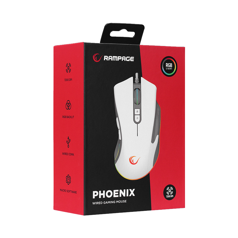 Miš gaming RAMPAGE SMX-R22 PhoenIX V2 White 7 key RGB 12800DPI, 39102