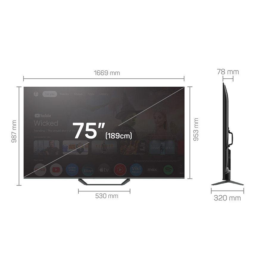 TESLA QLED TV 75" Q75E655GUS UHD Google TV, DVB-T/T2/C/S/S2;HDMIx3:USBx2:CI;2x12W Box Zvucnici