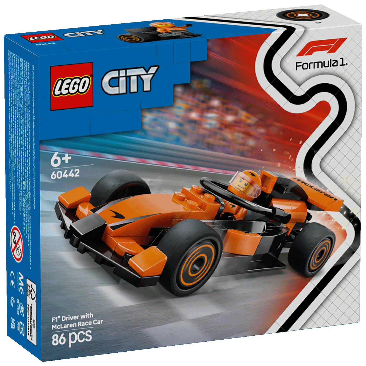 Djeca se upoznaju s uzbudljivim svijetom utrka u kompletu LEGO® City Vozač utrka F1® s trkaćim autom McLaren (60442). Mali model vozila savršen je za ljubitelje utrka od 6 godina i starije. Ima superaerodinamičan dizajn Formule 1® i glatke gume, a voziti ga može figurica vozača tima McLaren u maštovitoj igri i pričama. Otkrijte dinamičnu liniju LEGO kompleta s temom Formule 1 za djecu i odrasle.