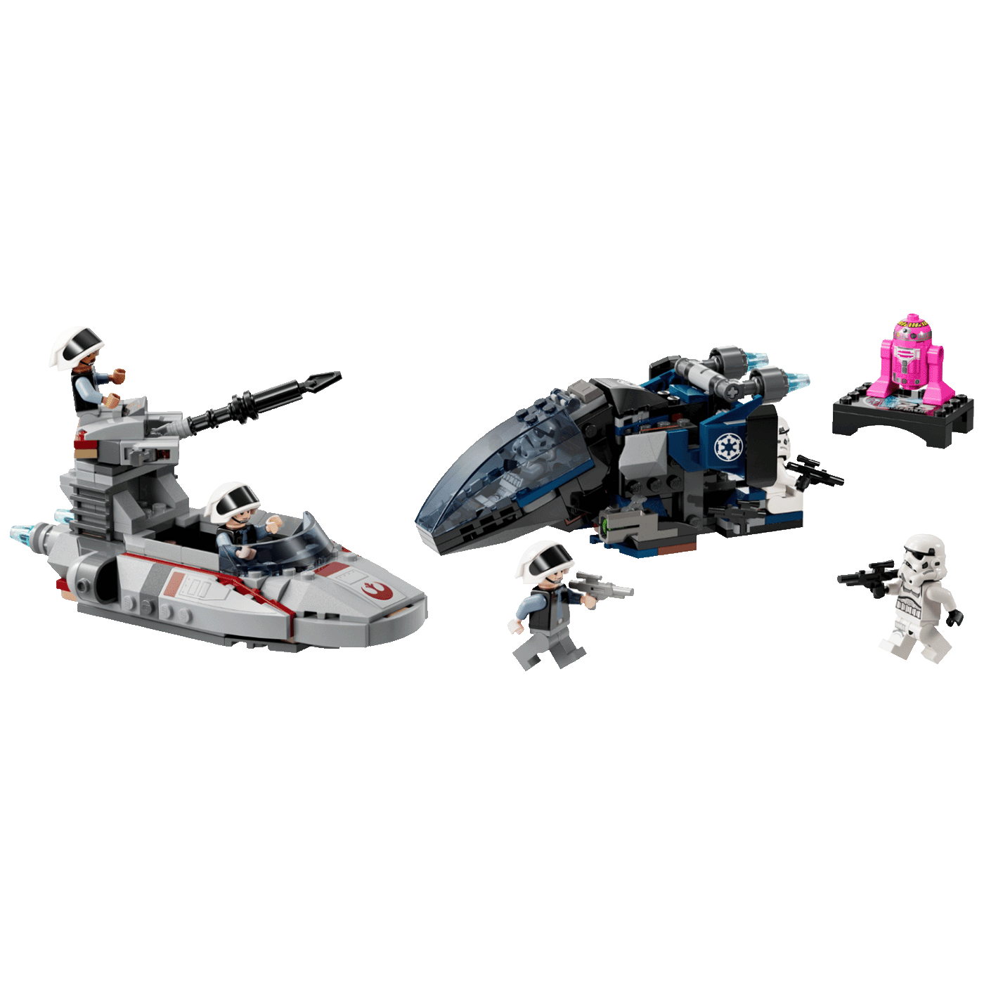 • Rebel Scout Speeder – Ima kokpit za 2 LEGO minifigure i odvojivu, rotirajuću kupolu s 2 pucača s izbojcima, podizni top i prostor za LEGO minifiguru