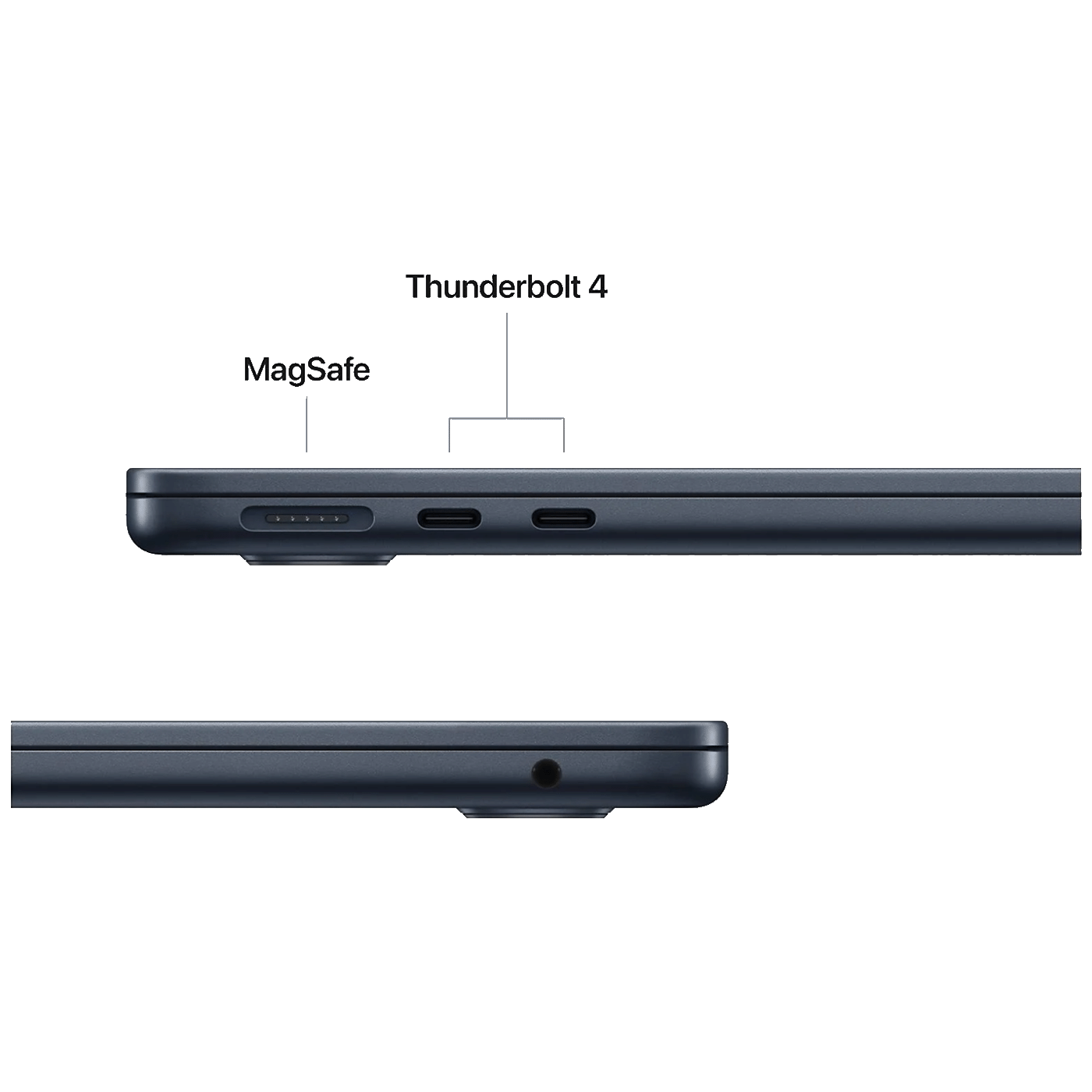 U priključnim opcijama se nalazi MagSafe 3 za punjenje, dva Thunderbolt 4 (USB-C) porta, kao i 3.5 mm audio izlaz. Tipkovnica je pozadinski osvijetljena s Touch ID čitačom radi sigurnog i brzog logiranja. Baterija pruža do oko 18 sati reprodukcije videa ili do 15 sati surfanja putem Wi-Fi-ja, što omogućava duže korištenje između punjenja.