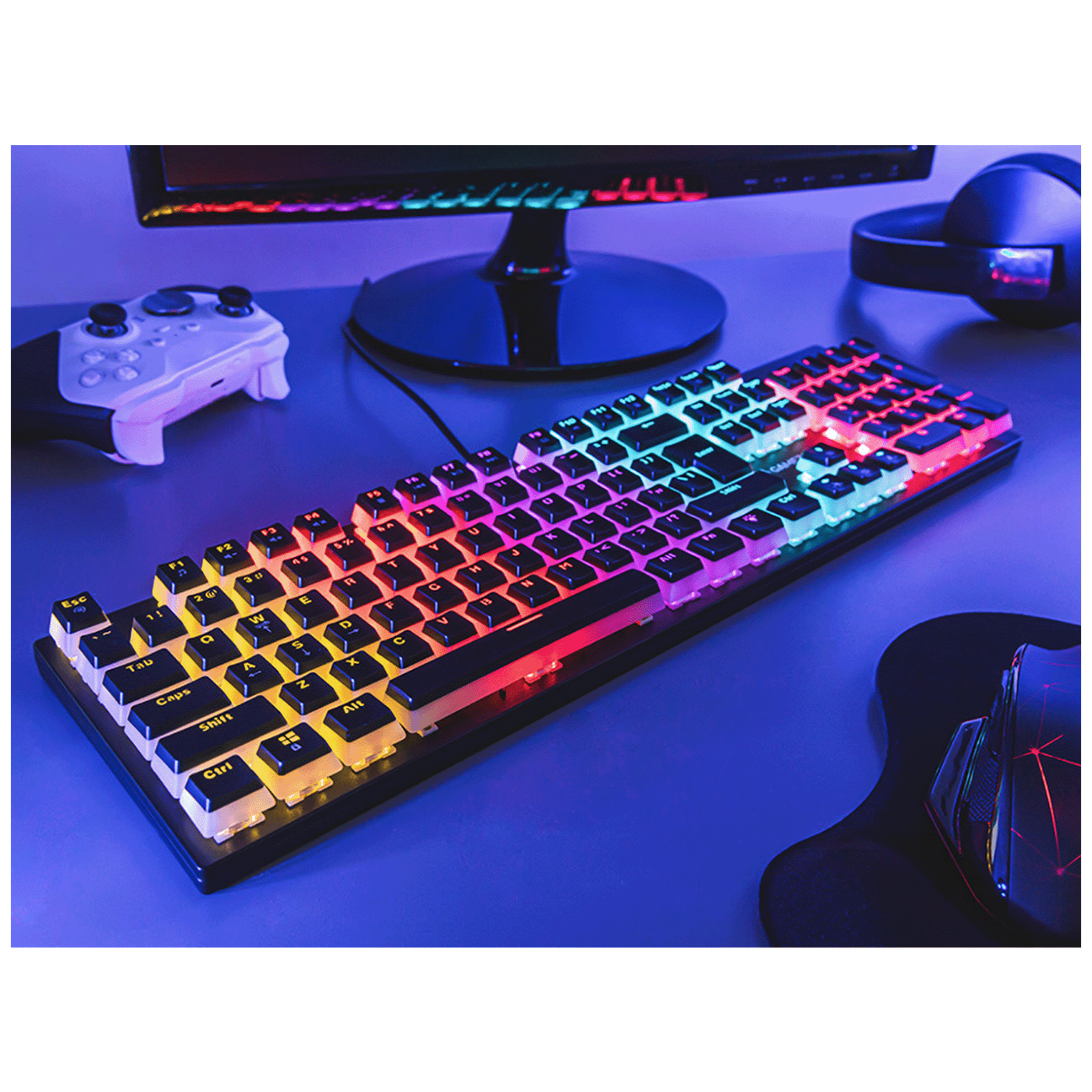Ova tastatura ima standardnu veličinu od 104 tastera i pudding-style RGB osvjetljenje koje daje dinamičan vizualni efekat tokom igre. Mekani i izdržljivi tasteri imaju vijek trajanja do 50 miliona klikova, što znači da možeš računati na dugotrajnu upotrebu i tokom intenzivnih gejming sesija. Anti-ghosting tehnologija osigurava da se do 25 istovremenih pritisaka registruje tačno, bez promašaja komandi. Tastatura takođe ima multimedijalne tastere za brzu kontrolu muzike i drugih funkcija, a 1,5 m USB kabl pruža pouzdanu vezu i dovoljnu slobodu kretanja.