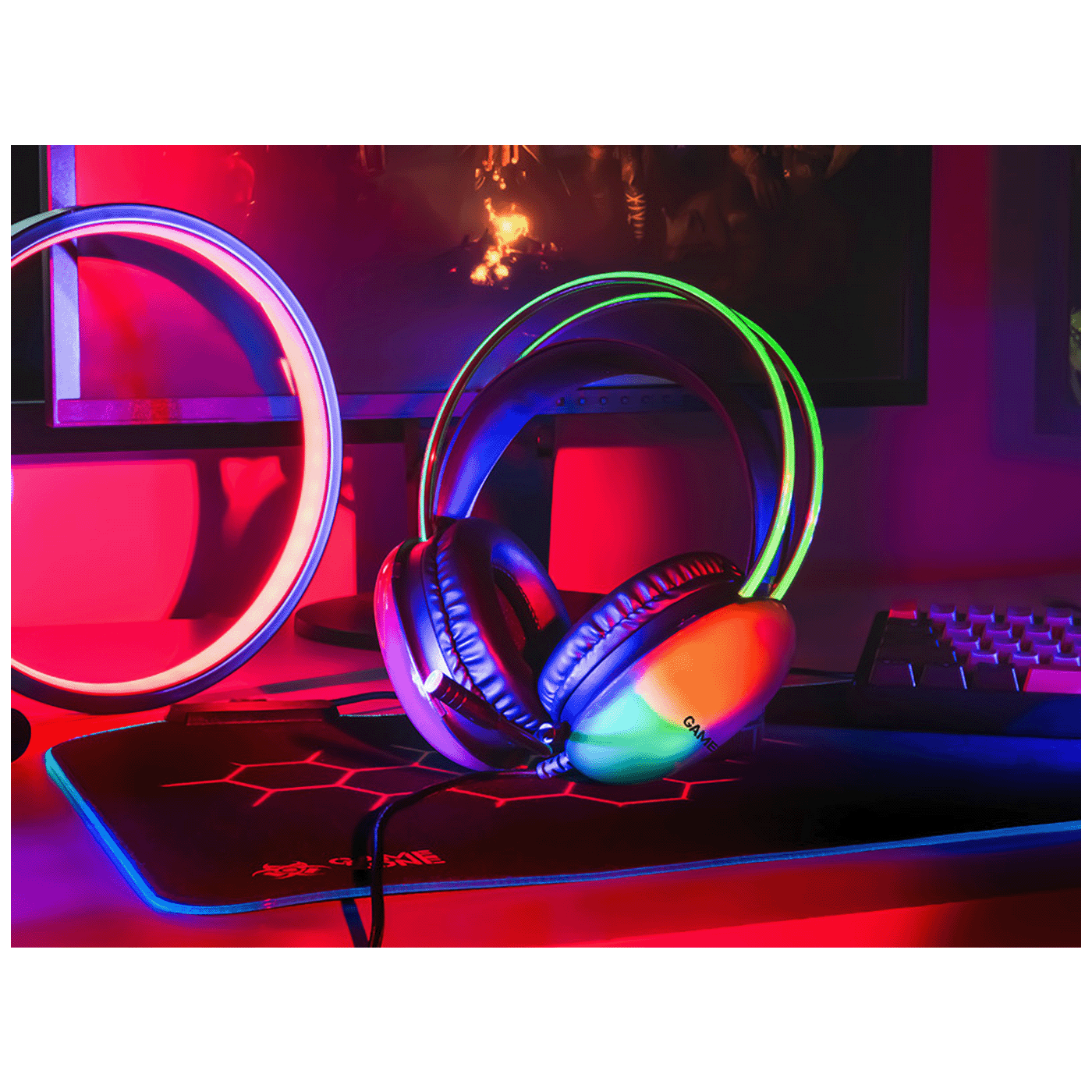 Ovaj headset ima 50 mm zvučnike koji daju čist i izražen zvuk sa snažnim basom, što pomaže da bolje čuješ svaki detalj igre. Kablu je opleten u zaštitni omotač koji sprečava lomi i zapetljavanje, a u headsetu je ugrađeno dugme za podešavanje jačine zvuka za jednostavno korištenje bez prekidanja igre. Traka za glavu je elastična i udobna, pa se slušalice mogu nositi satima bez nelagode. RGB osvjetljenje daje efektan vizualni izgled, a mikrofon je fleksibilan i omogućava jasnu komunikaciju s ekipom. Slušalice se povezuju putem 3,5 mm mini-jack kabla i kompatibilne su s računarima, konzolama i drugim uređajima koji imaju taj ulaz.