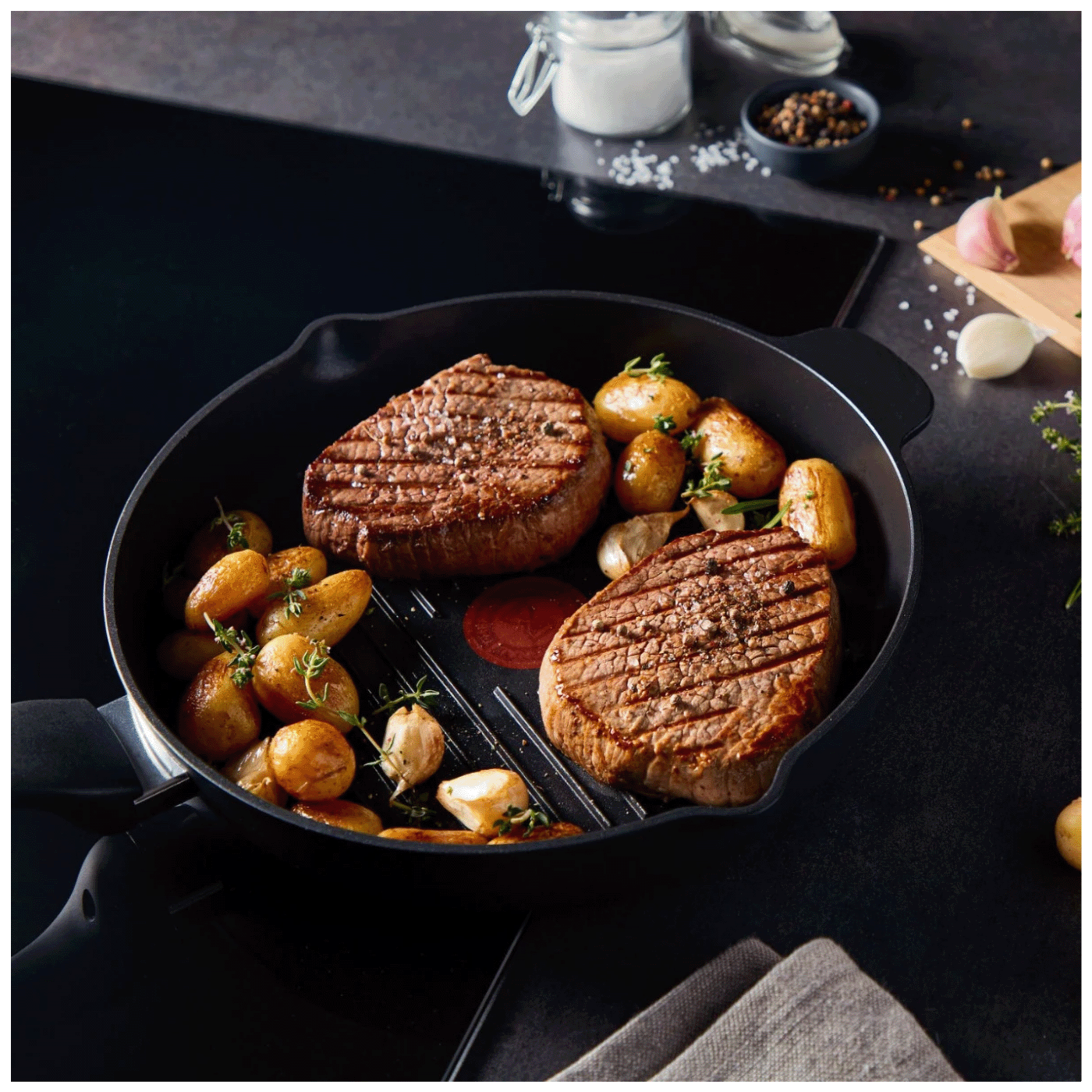 Tefal XL Force grill tava dimenzija 26x26 cm idealna je za pripremu mesa, ribe i povrća s autentičnim grill efektom. Zahvaljujući kvalitetnom neprianjajućem premazu, omogućava pripremu hrane uz minimalnu količinu ulja te jednostavno čišćenje nakon upotrebe. Integrisani Thermo-Signal indikator pokazuje optimalnu temperaturu za početak pečenja, čime se osiguravaju savršeni rezultati. Robusna konstrukcija i duboke grill linije omogućavaju ravnomjerno pečenje i karakteristične tragove roštilja.