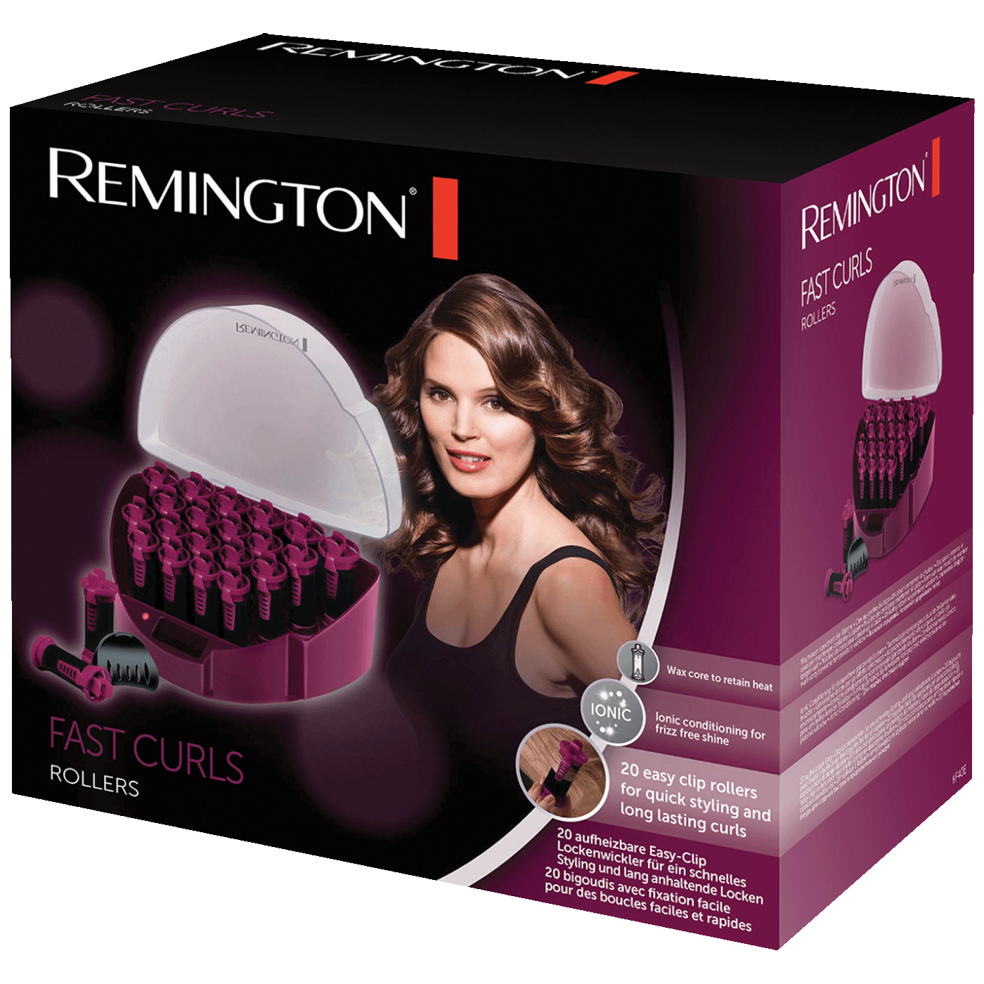 Remington Fast Curls KF40E su grijani uvijači za kosu koji ti omogućavaju da brzo i jednostavno oblikuješ uvojke i volumen bez potrebe za klasičnim figarom ili peglom. Sadrži 20 uvijača u tri različite veličine — mali, srednji i veliki — što ti omogućava da prilagodiš stil frizure: od izrazitih sitnijih kovrča do većih talasa s volumenom. Električni uvijači imaju inovativnu voskom ispunjenu jezgru koja se brzo zagrijava i zadržava visoku temperaturu, omogućavajući da frizura bude gotova već nakon nekoliko minuta i traje duže. Baršunasta površina omogućava ugodno i glatko uvijanje bez zapetljavanja, a Comfort Clips kopče osiguravaju da se uvijači dobro učvrste u kosi tokom oblikovanja. Uređaj također koristi ionsku tehnologiju za smanjenje statičkog elektriciteta i postizanje sjajnijih, glatkijih rezultata.