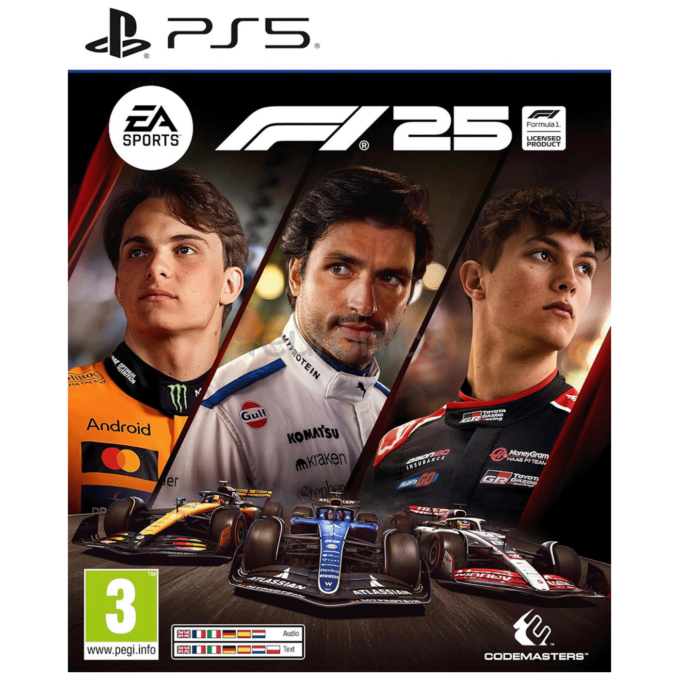 EA Sports F1 25 je službena video igra FIA Formula One World Championship™ 2025 za PlayStation 5, koja ti omogućava da doživiš trkaće uzbuđenje najprestižnije svjetske serije auto-utrka na realističan i interaktivan način. Igra donosi poboljšane trkačke mehanike, realističnu fiziku i vizualni prikaz staza i bolida, a uključuje i sljedeće poglavlje priče u popularnom Braking Point modu, te prošireni My Team – timski režim u kojem možeš graditi i voditi svoj F1 tim kroz sezону. F1 25 uključuje ažurirane staze skenirane LIDAR tehnologijom za dodatni realizam, nove online kooperativne i takmičarske modove, te podršku za online i lokalni multiplayer (uključujući split-screen) za do dva igrača. Igra za online igranje zahtijeva PS Plus pretplatu. Izdanje je optimizirano za PS5 sa podrškom za DualSense vibraciju i trigger efekat, a standardno uključuje osnovnu igru dok dodatne opcije i paket sadržaja dolaze uz Iconic Edition ili DLC-pakete.
