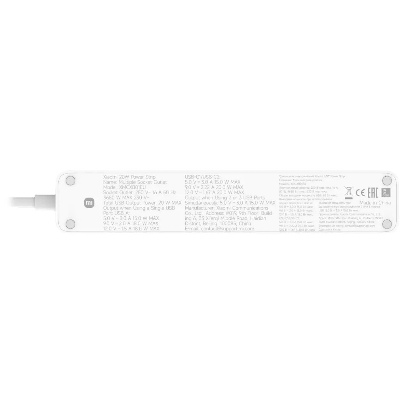 Xiaomi 20 W Power Strip moderan je i funkcionalan produžni kabel (produžna letva)koji nudi sve što vam je potrebno za sigurno i učinkovito napajanje više uređaja istovremeno. Opremljen je s ukupno 6 priključaka: