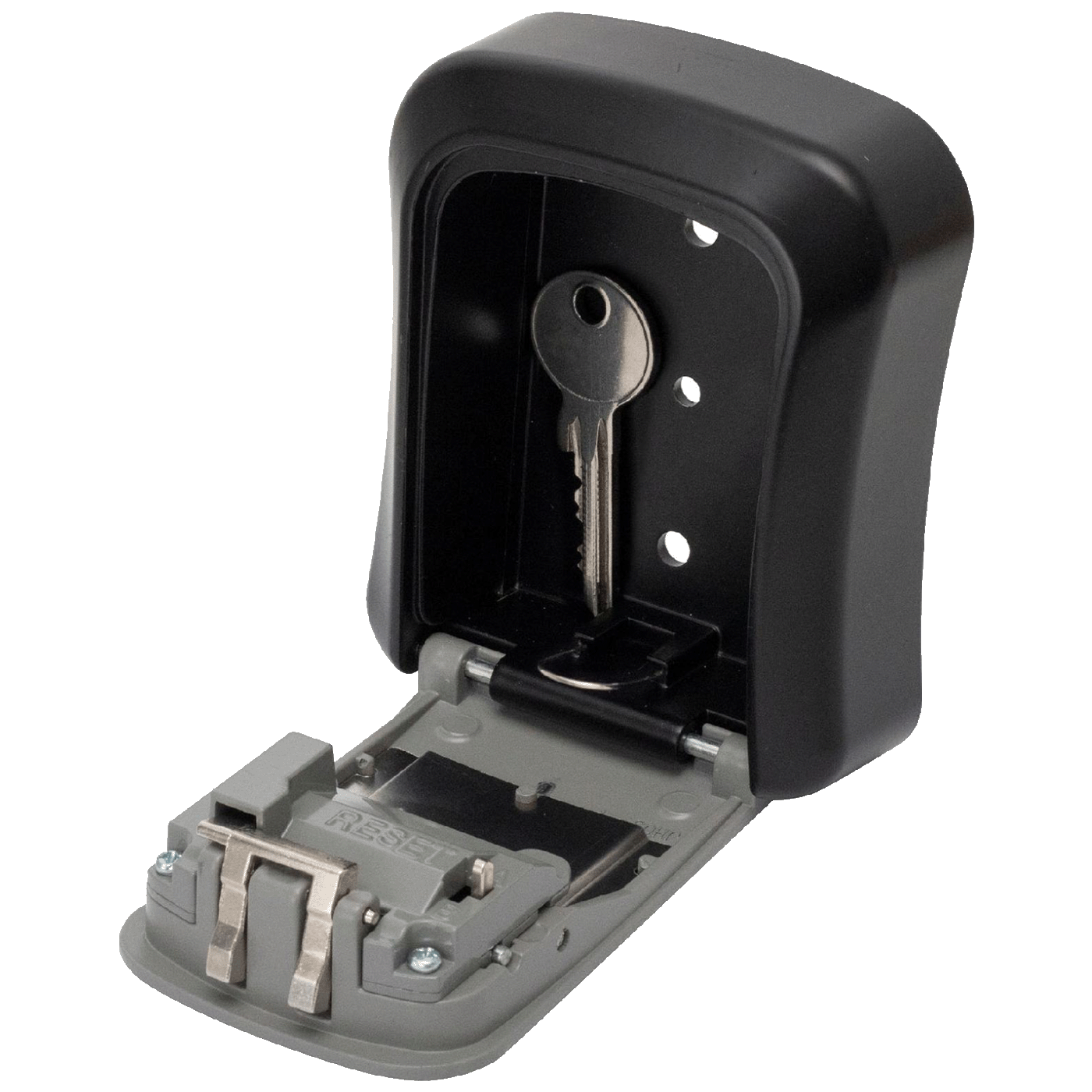 SAFEKEY sef za ključeve izrađen je od čvrstog lijevanog aluminija, otporan je na vremenske utjecaje i mehanička oštećenja. Masivna vrata, koja se otvaraju prema dolje u vodoravan položaj, omogućuju jednostavan pristup, dok stabilna konstrukcija sprječava neovlašteno otvaranje.