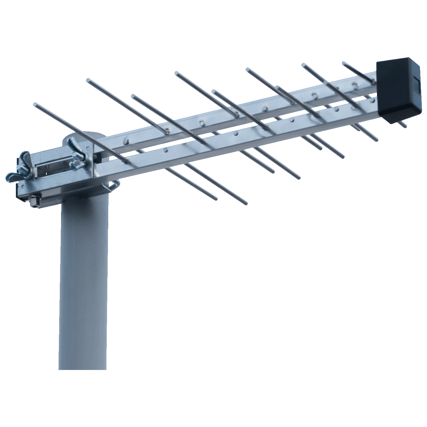 Vanjska kratka antena sa snažnim signalom. Jedna od glavnih karakteristika antena koje proizvodimo je ugrađeni "F" ženski konektor, koji omogućava jednostavno povezivanje koaksijalnog kabla na antenu. P-20 DTT/G H/V H/V verzija s ugrađenim pojačalom DIGI-LOG 14VU i "F" ženskim konektorom. Može se koristiti za obje polarizacije.