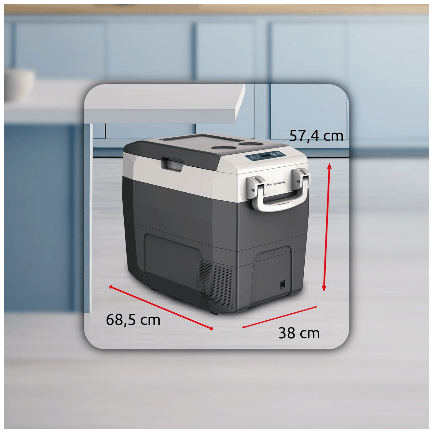 Frižider je dizajniran za svestranu upotrebu, radi na 12V, što ga čini pogodnim za automobile, ali i na 220-240V preko adaptera (nije uključen).