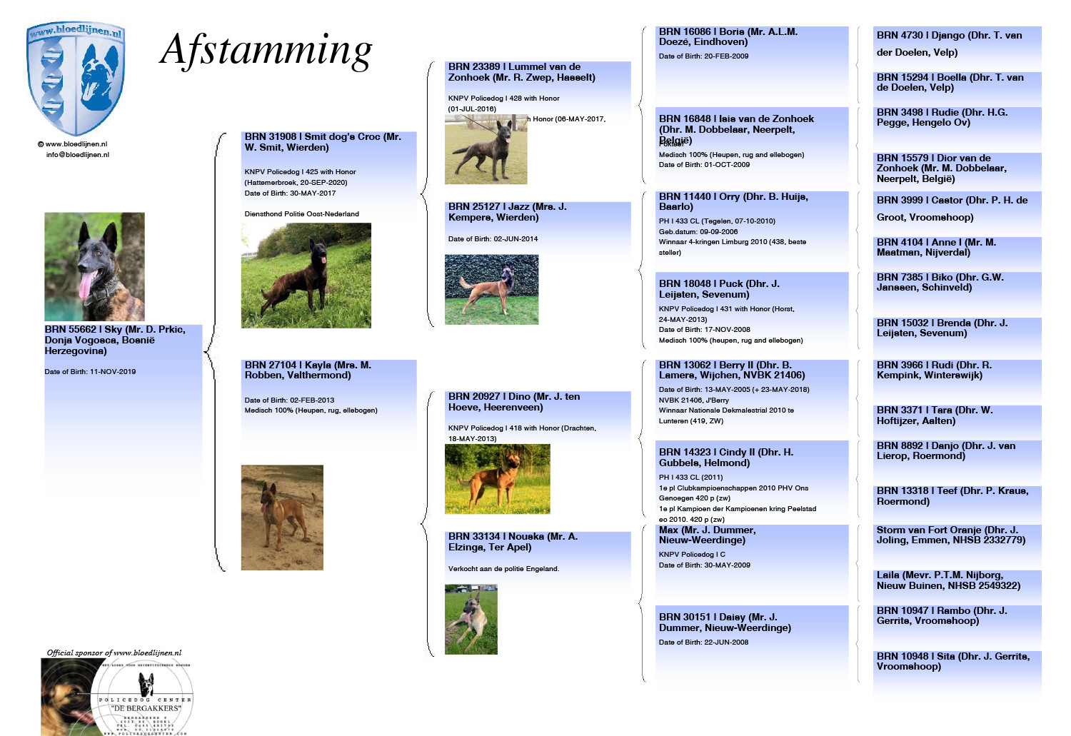 - Otac Skyja: Smit Dog's Croc - KNPV Police Dog I 425 with Honor (Hattemerbroek, Nizuzemska) BRN 31908