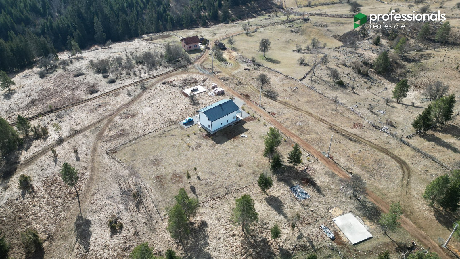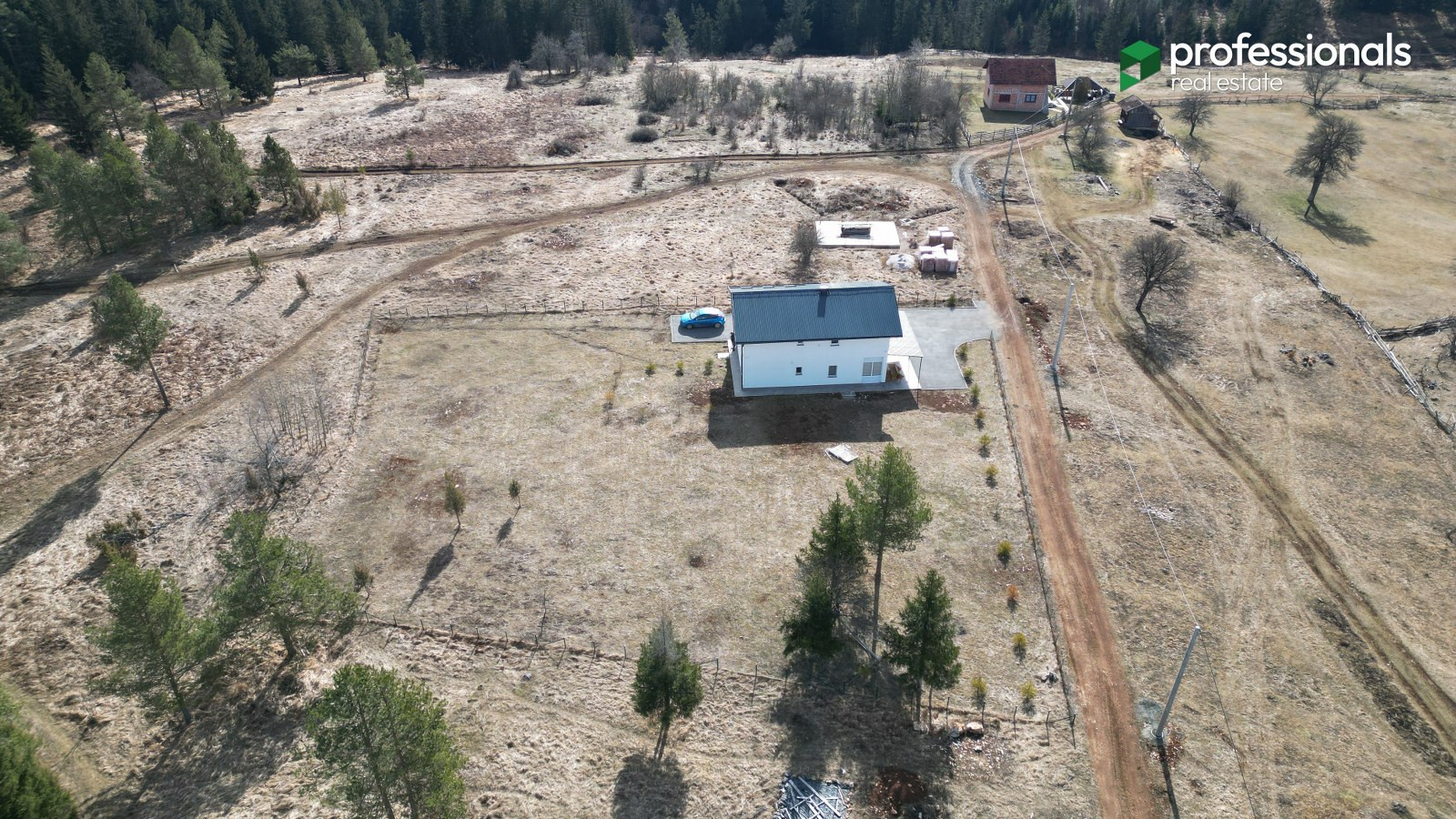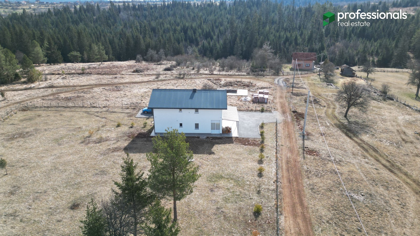 Predmetna nekretnina je izgrađena 2022. godine na zemljištu površine 2384 m2, te je sa parcelom pored (995 m2) ukupna površina zemljišta 3379 m2. .Sastoji se od dvije etaže: prizemlje i prvi sprat ukupne površine 180 m2. Etaže su skoro indentičnog rasporeda, te se na svakoj nalazi dnevni boravak sa kuhinjom i trpezarijom, spavaća soba, kupatilo i prostranea terasa sa prelijepim pogledom.