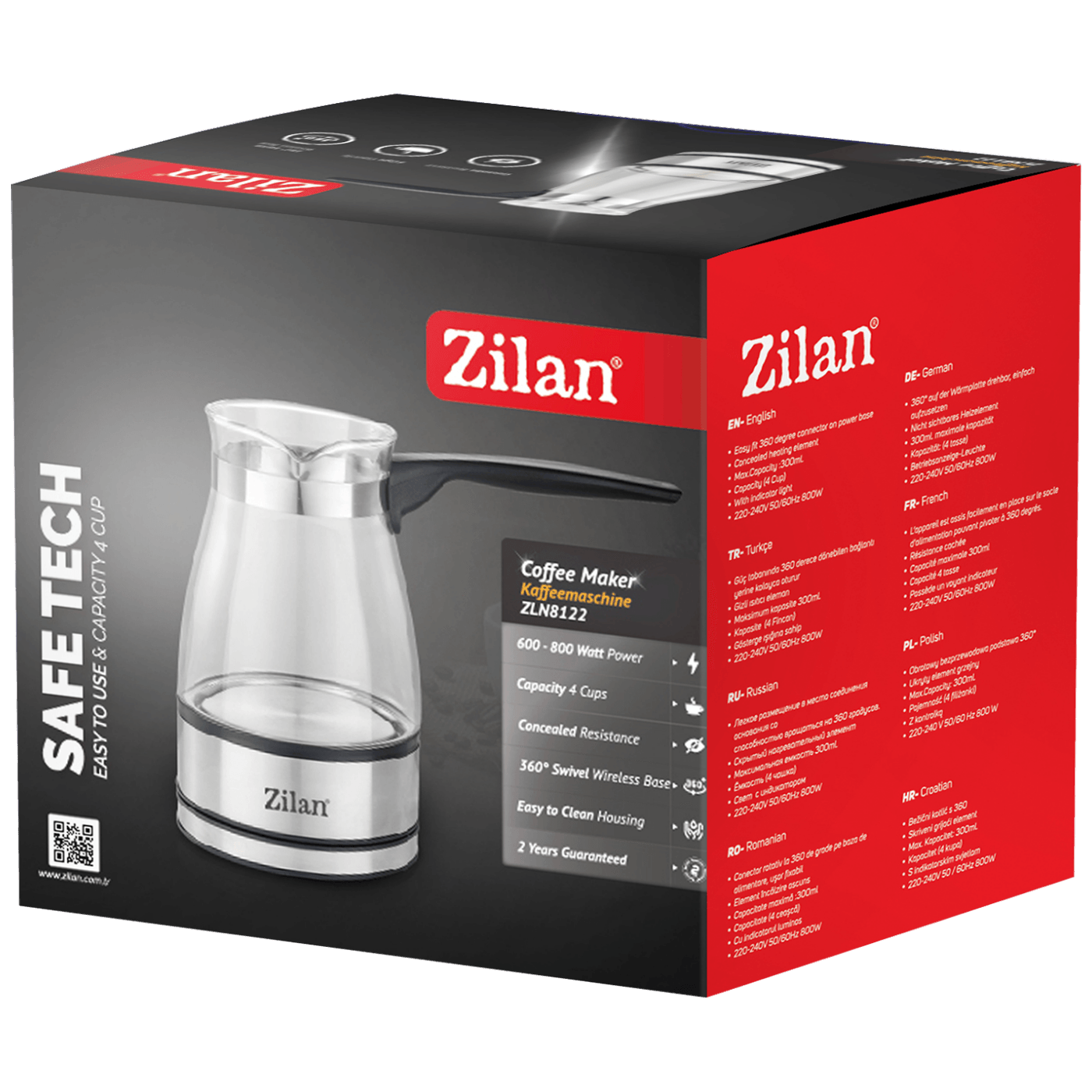 Kuhalo za tursku kafu Zilan, ZLN8122, snaga 600 - 800W, priprema do 4 šoljica kafe, puna rotacija omogućava jednostavno rukovanje aparatom, nema zapetljavanja kabela, skriveni grijač, indikator rada