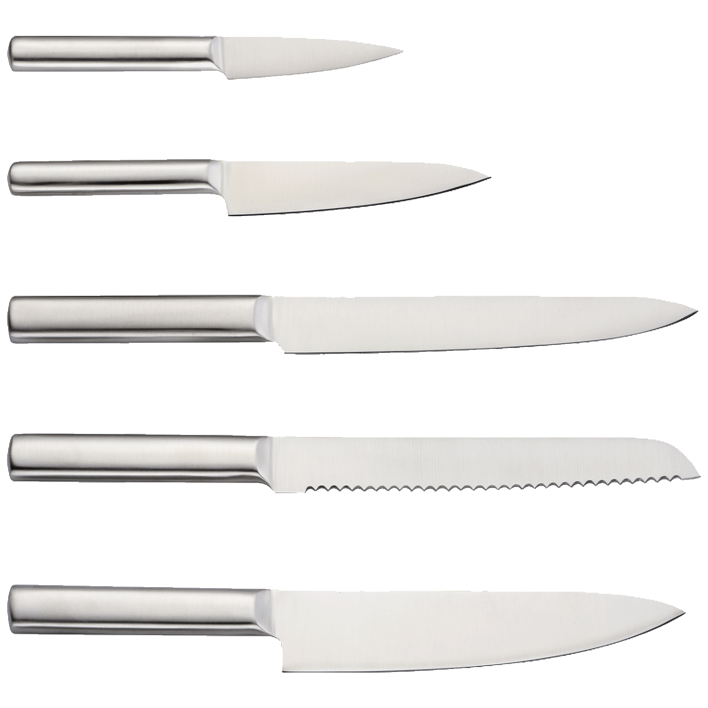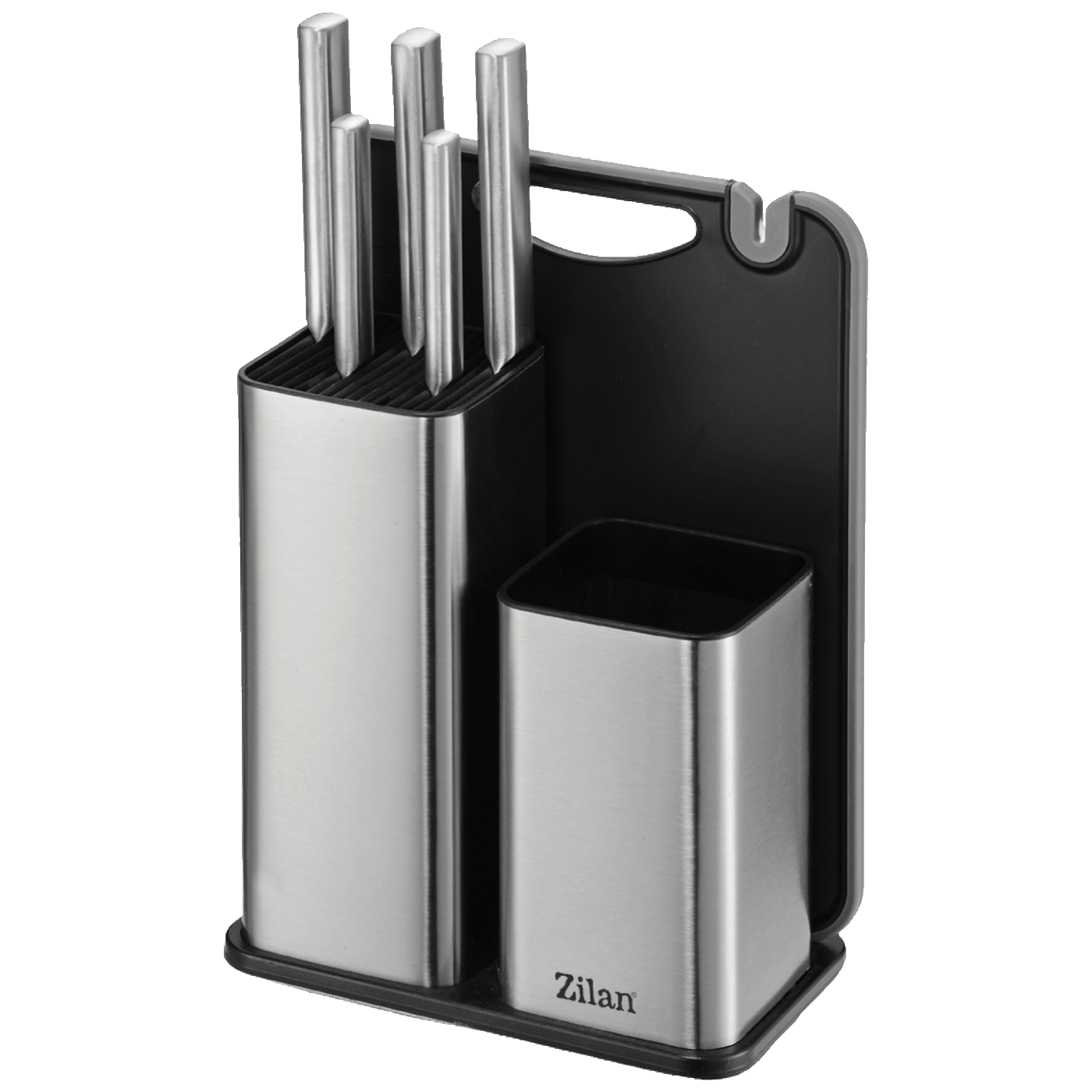 Set noževa Zilan ZLN1634 sadrži 7 komada, to su 5 noževa, 1 sjeckalica sa ugrađenim oštrilom za noževe. Ručke noža izrađene su od nehrđajućeg čelika.