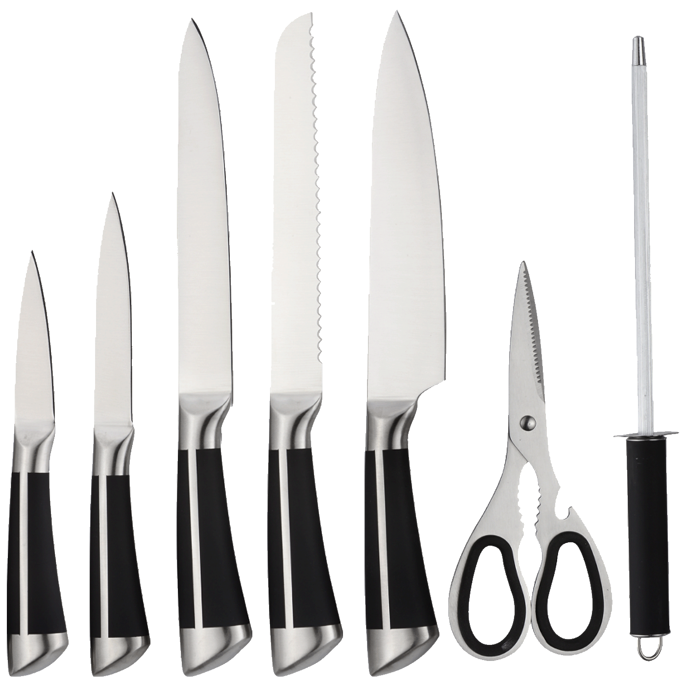 ✅ 8 komada: uključuje kuharski, noževe za kruh, sjeckanje, te škare
