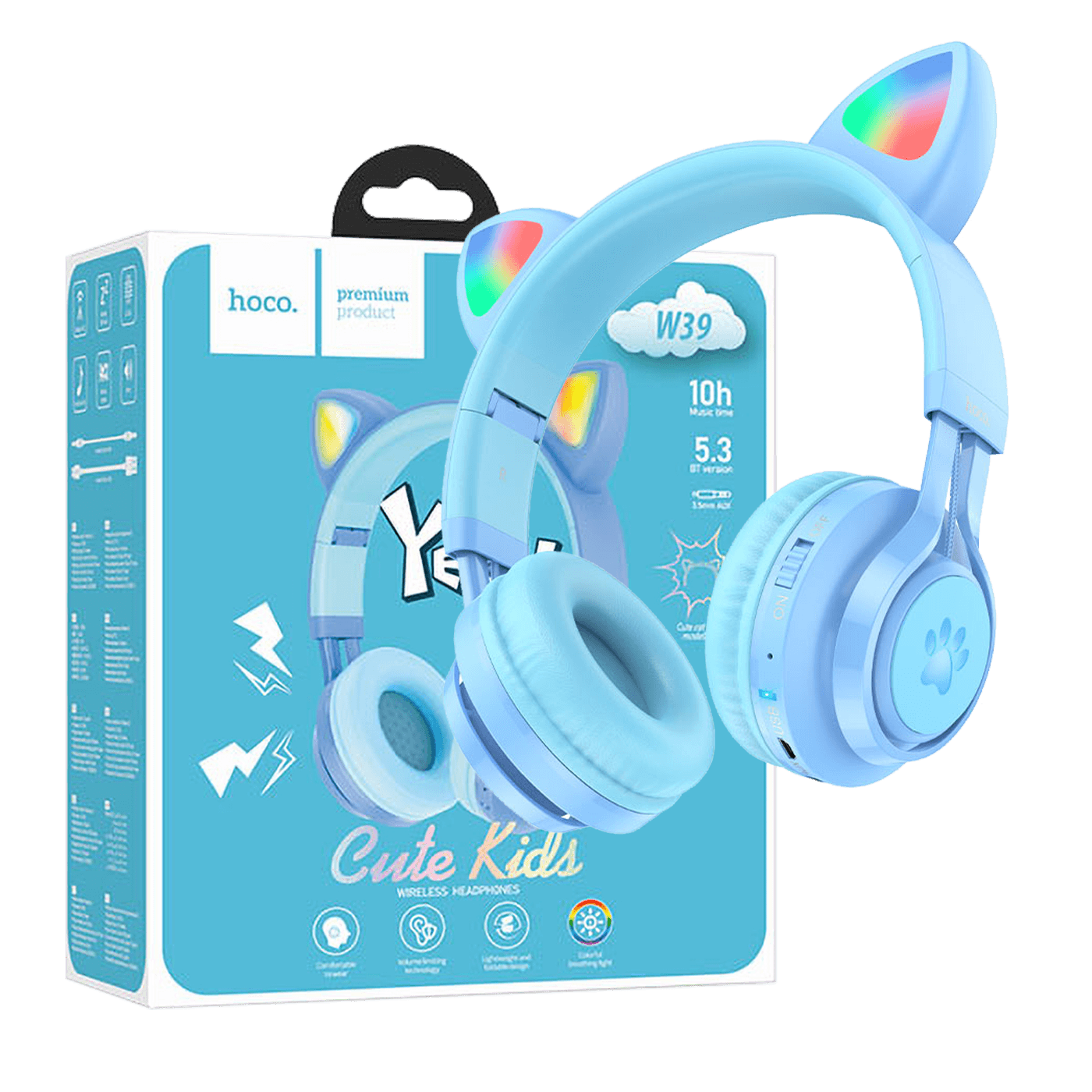 hoco. Slušalice bežične sa mikrofonom, Bluetooth, mačje uši, plava - W39 slušalice Mačje uši,Plave