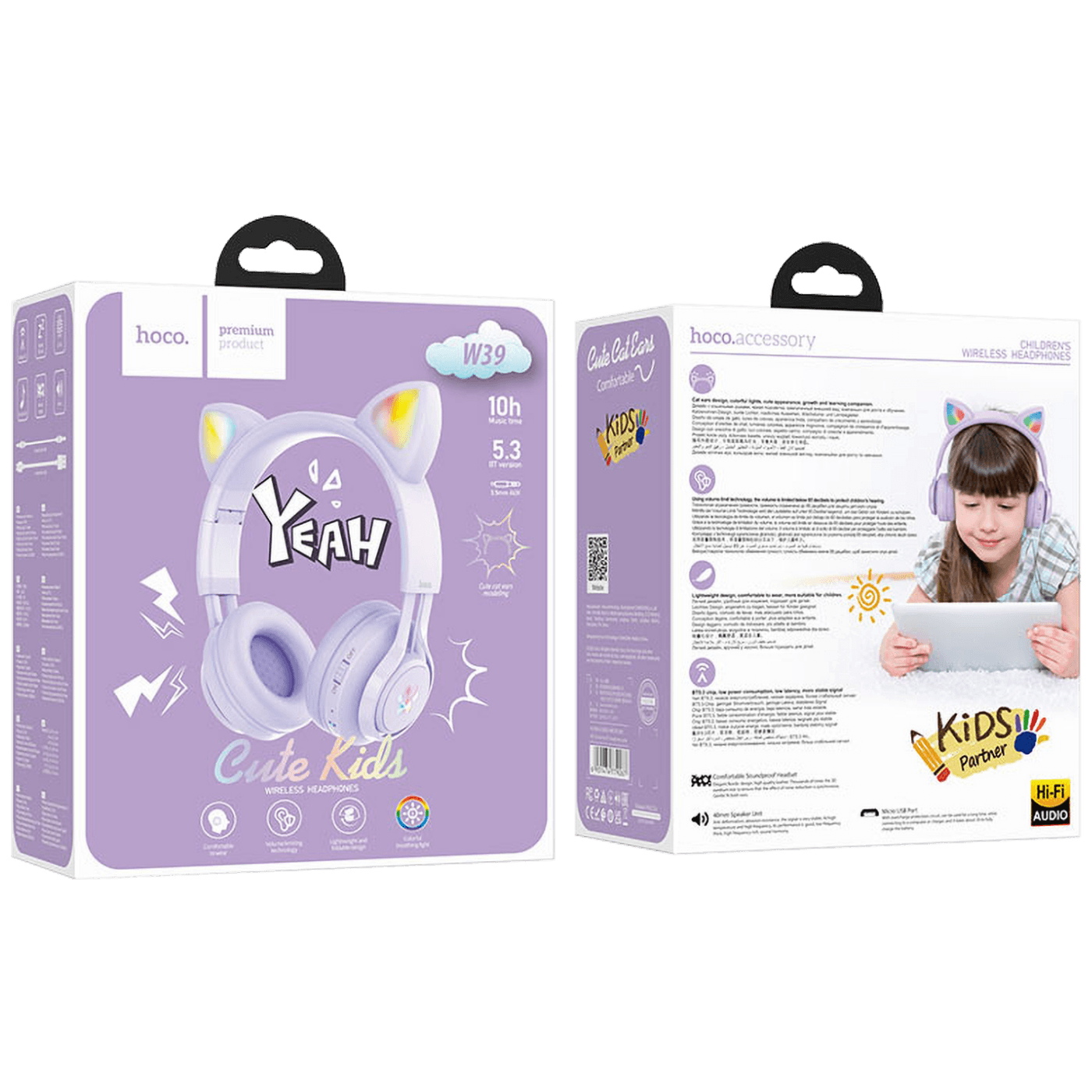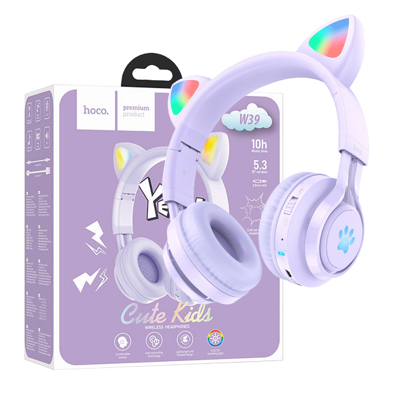 hoco. Slušalice bežične sa mikrofonom, Bluetooth, mačje uši - W39 slušalice Mačje uši,Ljubičaste