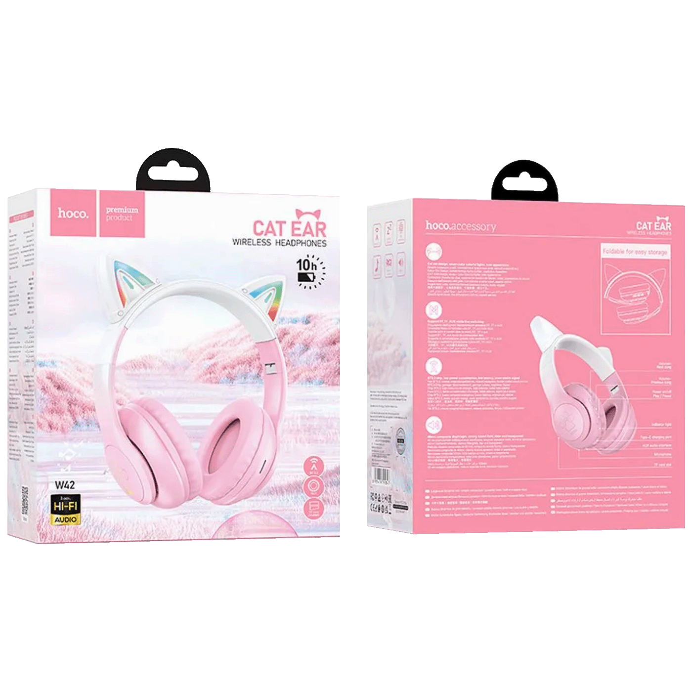 Hoco W42 bežične slušalice s mačjim ušima. Omogućuju visokokvalitetnu reprodukciju zvuka i učinkovito upravljanje pozivima. Savršen poklon za djecu.
