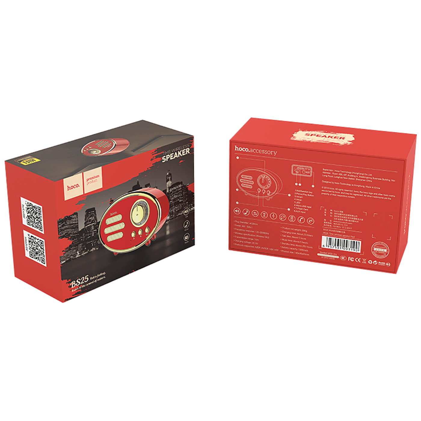 hoco. Zvučnik bežični, Bluetooth,retro, 1200 mAh, 5 h, 5 W, crvena - BS25 Time, Bluetooth, retro, red