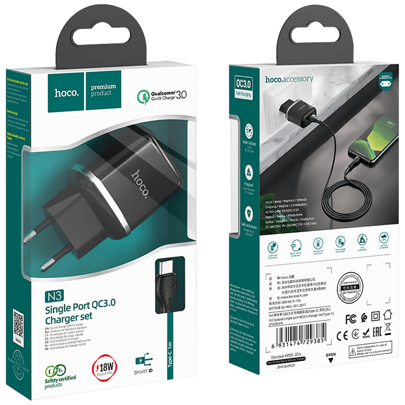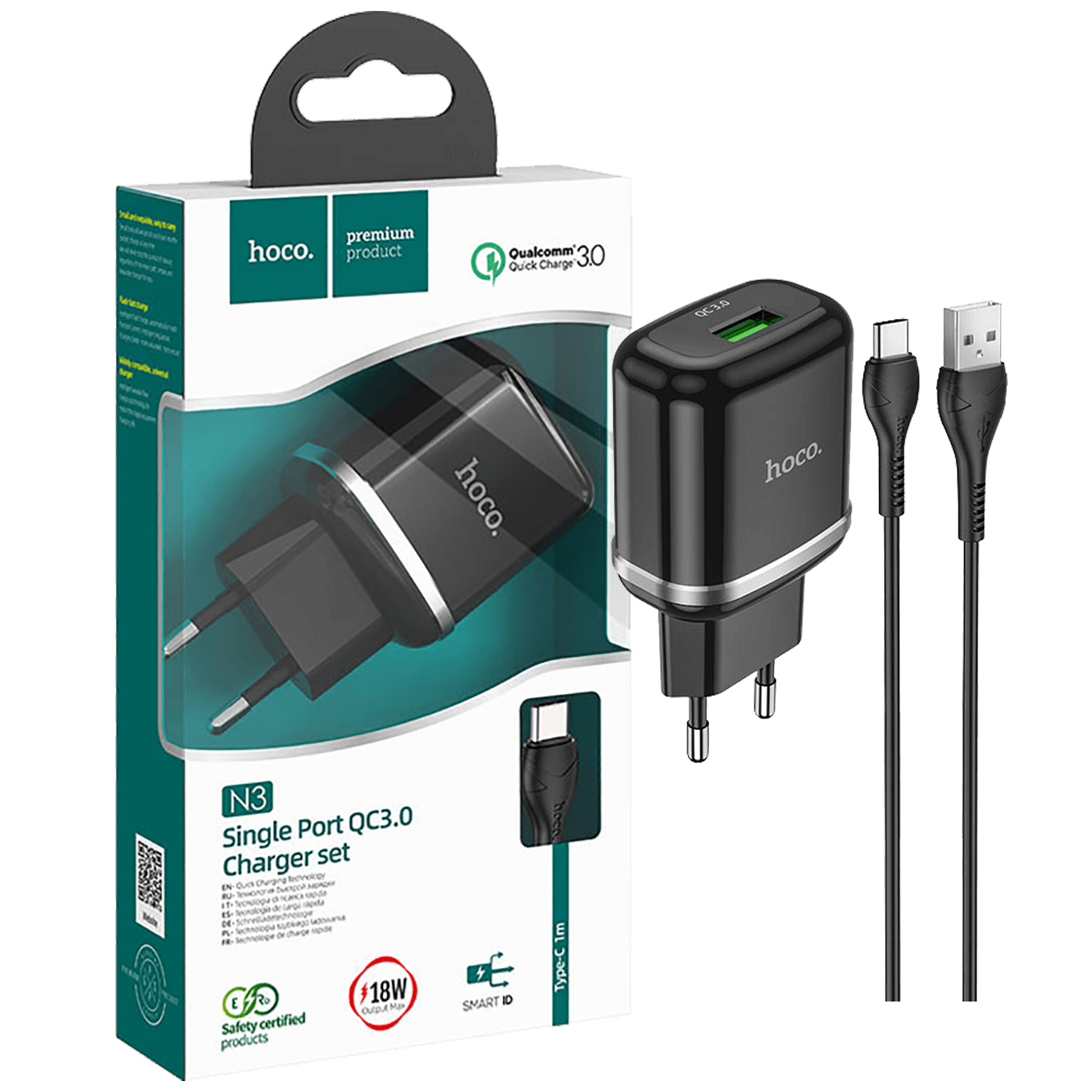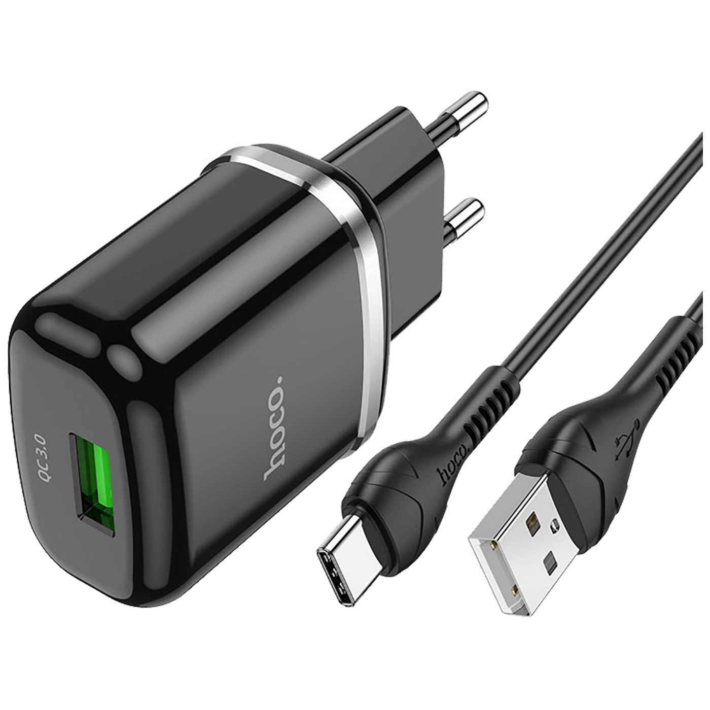 hoco. Punjač kućni sa type C kabelom, brzi, QC3.0, 18W - N3 Vigour Black