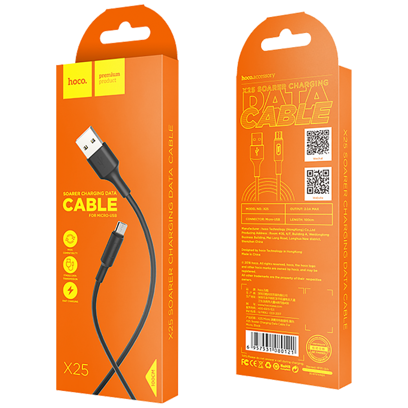 hoco. USB kabl za smartphone, micro USB kabl, 1 met., 2 A, crna - X25 Soarer Micro USB, Black