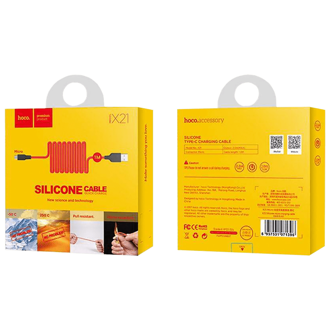 hoco. USB kabl za smartphone,silikonski,1.2 met,2 A, crno/crvena - X21 Silicone Micro USB, Black/Red
