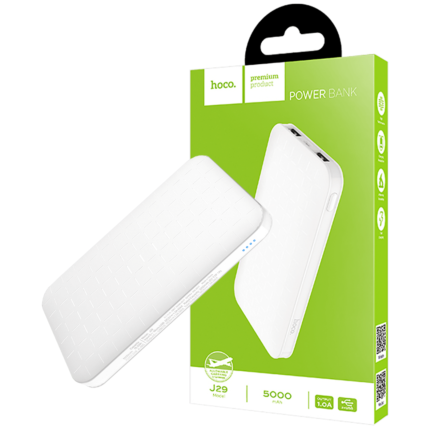 hoco. Punjač prijenosni za mobitele, 5000 mAh, 1 A/1 A - J29 Cool Square Power Bank
