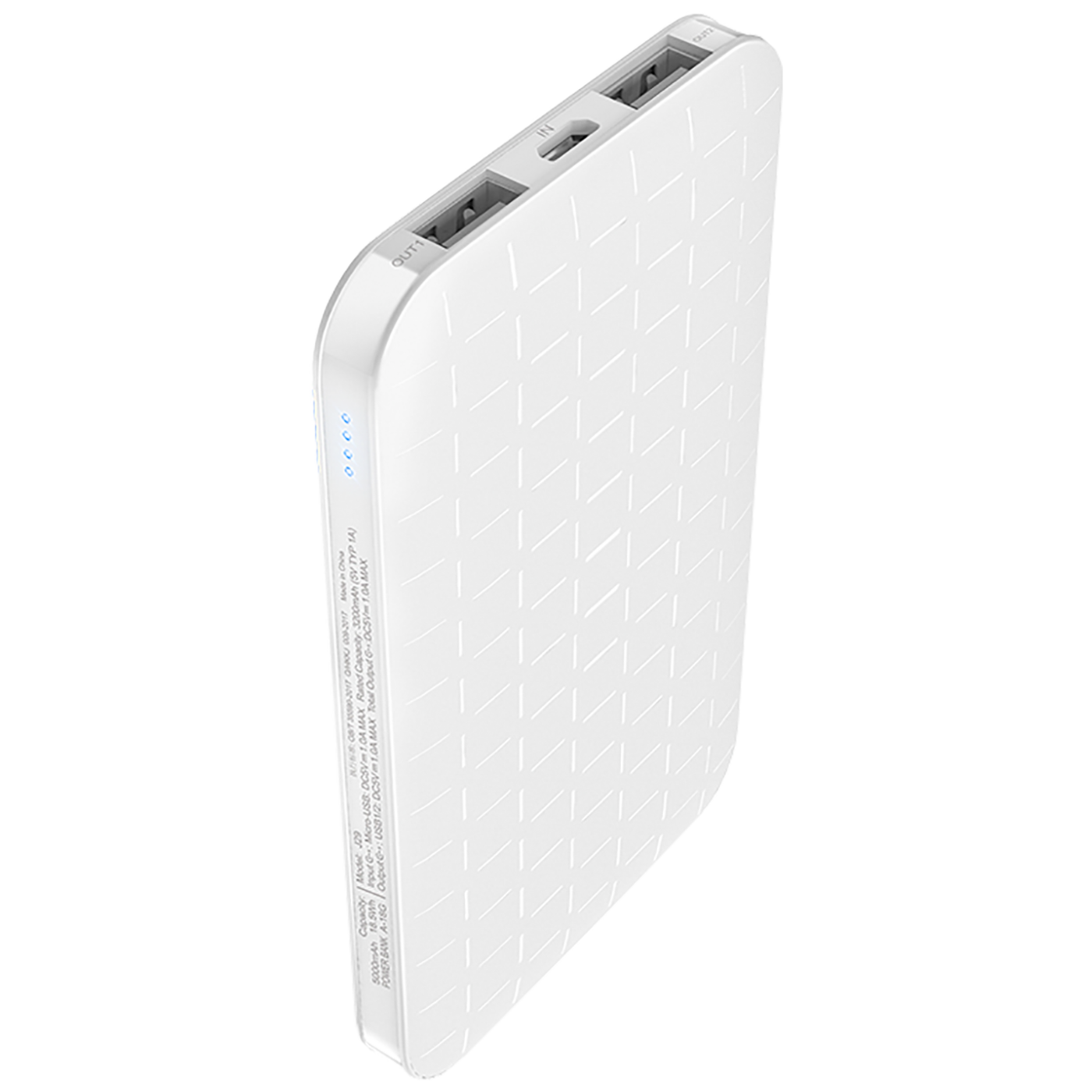 Prijenosni punjač za mobitel (smartphone, MP3 Player...), 5000 mAh, ugrađena punjiva Li-Po baterija, izlazna konekcija 2 x USB konektor, ulazna konekcija micro USB kabel za punjenje, ulaz 5V / max. 1.0A, izlaz: 5V / 1.0 A, LED indikator.