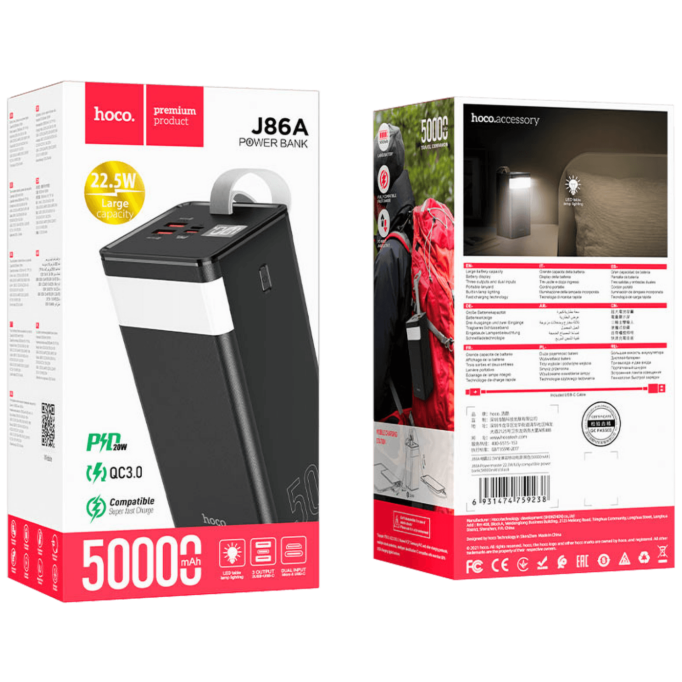 hoco. Punjač prijenosni sa lampom, 50000mAh, brzi QC/PD, 3A - J86A Powermaster
