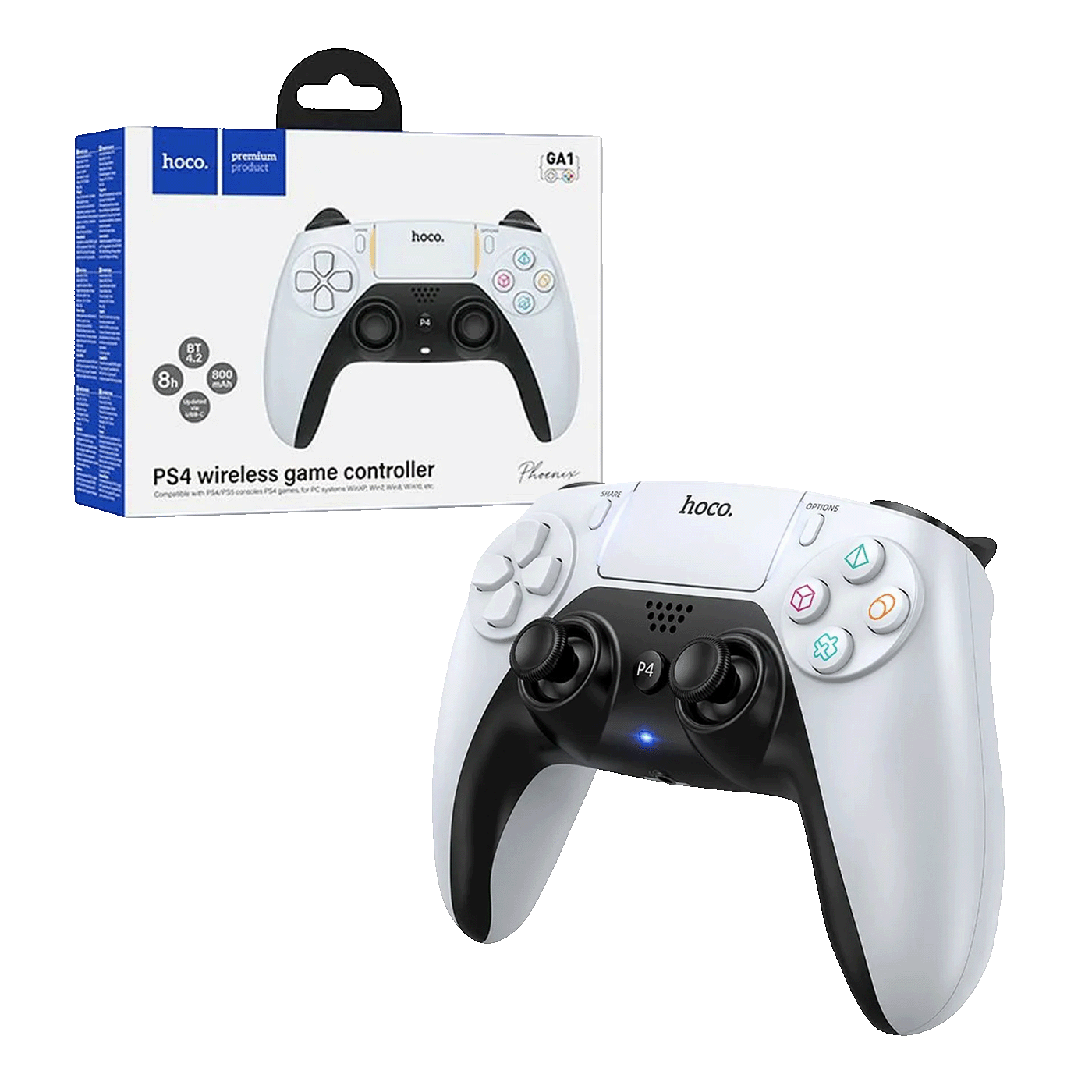 HOCO GA1 je moderan kontroler kompatibilan s PS4 i PC računarima. Opremljen je osjetljivim touchpadom, dvostrukom vibracijom, 3D akcelerometrom, žiroskopom i RGB osvjetljenjem, što omogućava maksimalno uživljavanje u igru.