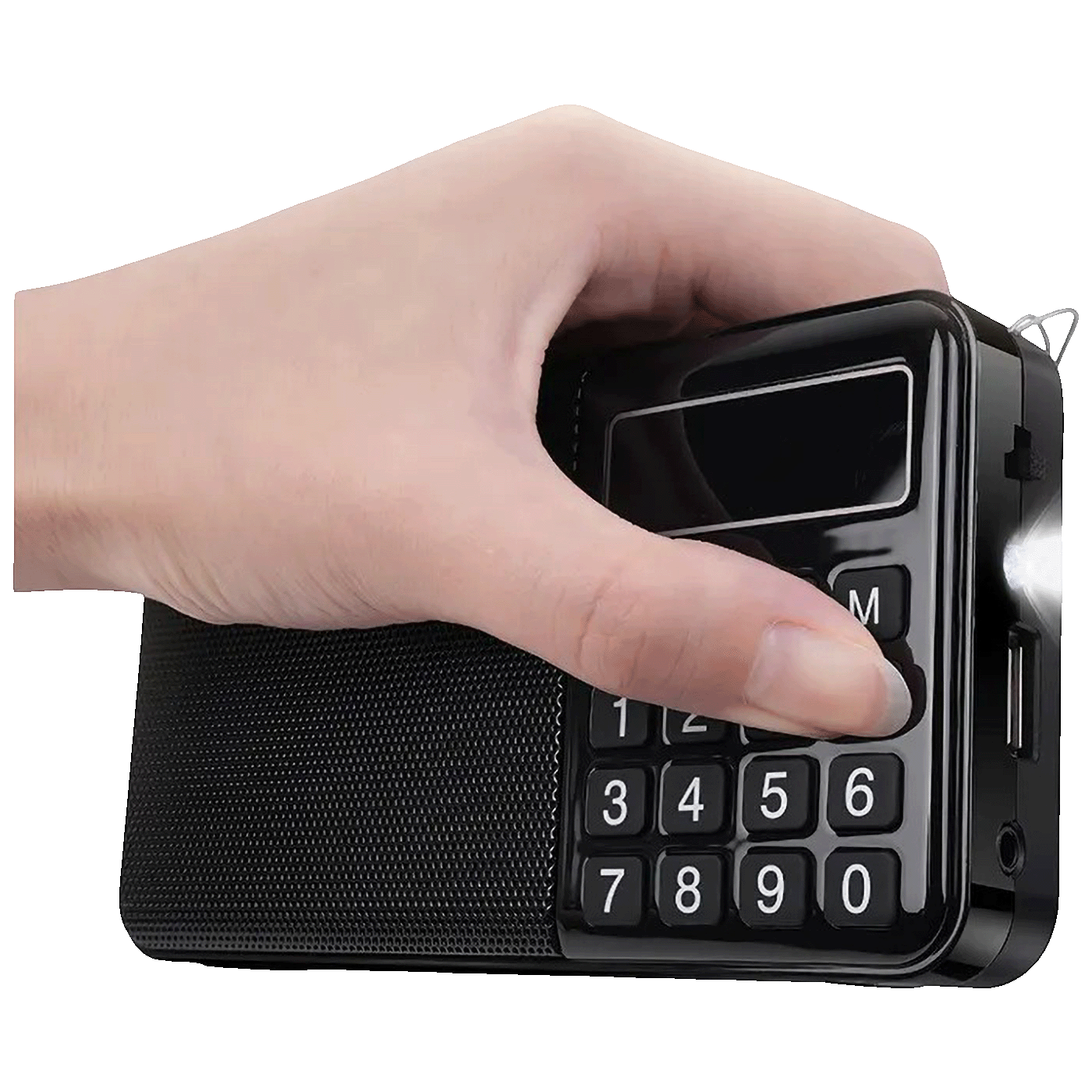 Ugrađeni zvučnik od 45 mm i 5 W pruža jasan i snažan zvuk za svoju veličinu. Gumirane silikonske tipke omogućavaju jednostavno upravljanje radijom, promjenu pjesama i podešavanje glasnoće.
